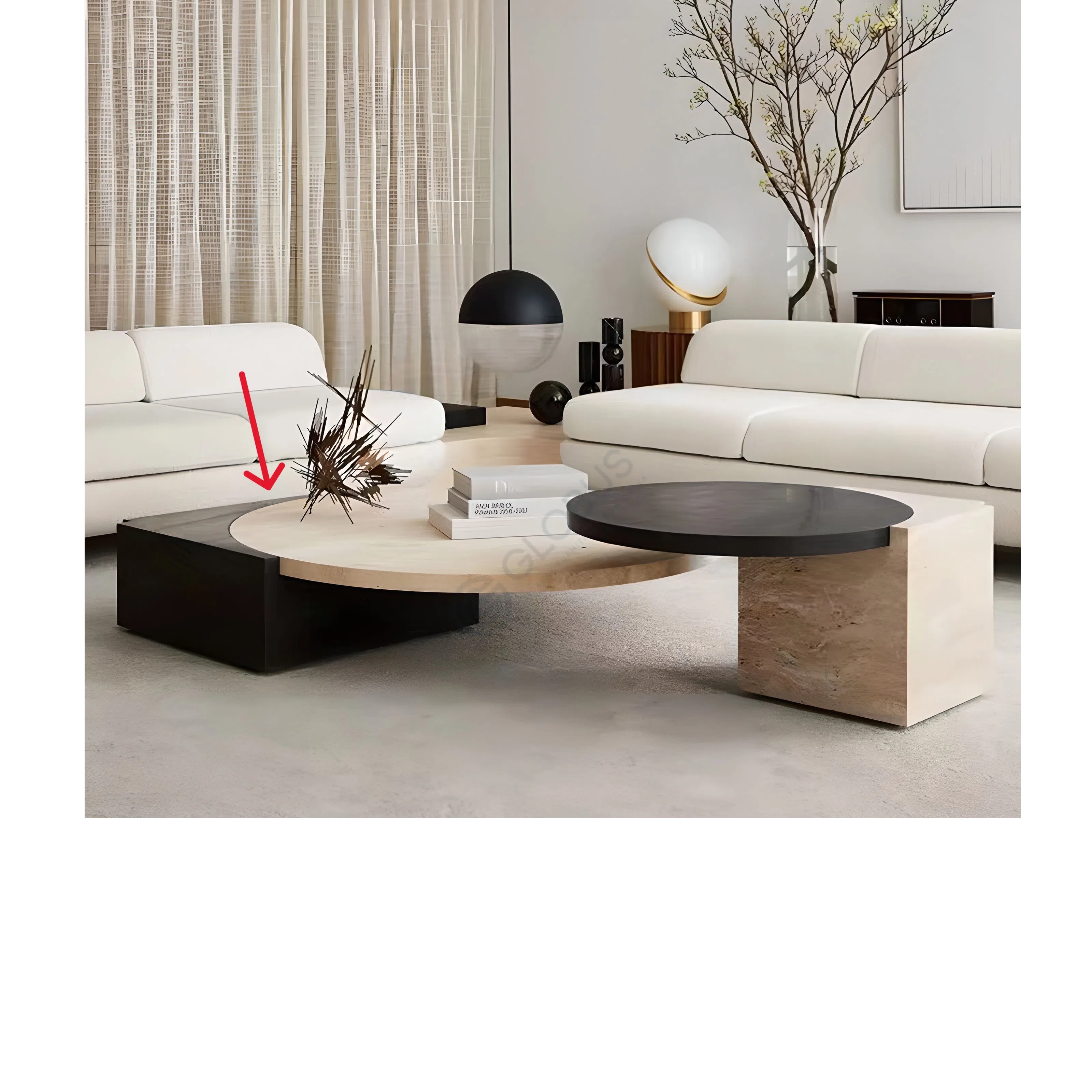 This piece introduces a sophisticated element to the living room. Its blend of geometric form and natural materials creates a contemporary aesthetic that is both elegant and functional. Placed beside a sofa or armchair, it offers a refined surface for essentials, enhancing the comfort and style of the seating area.