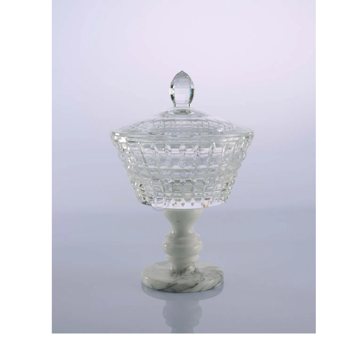 Meticulously crafted from high-quality K9 crystal, every curve and angle of this fruit vase reflects the natural light, creating an enchanting play of luminosity. The addition of natural marble further elevates the aesthetic, ensuring each piece is truly one-of-a-kind.