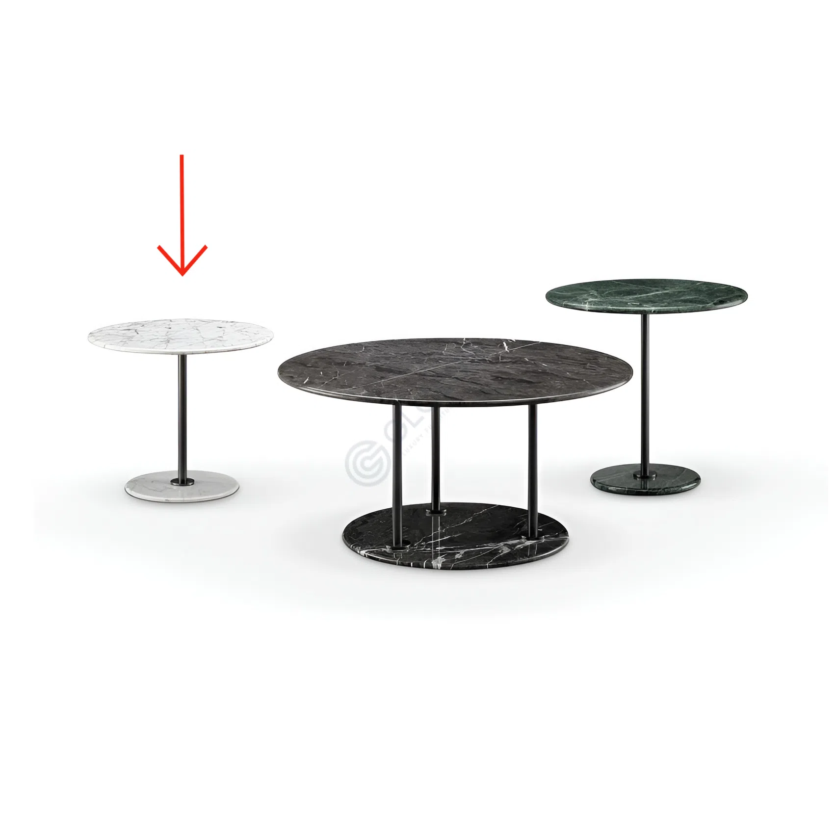 The careful composition of the round marble surfaces and slender metal legs creates a balanced and stylish form. This table offers a practical surface while enhancing the room's decor with its luxurious materials and contemporary silhouette.