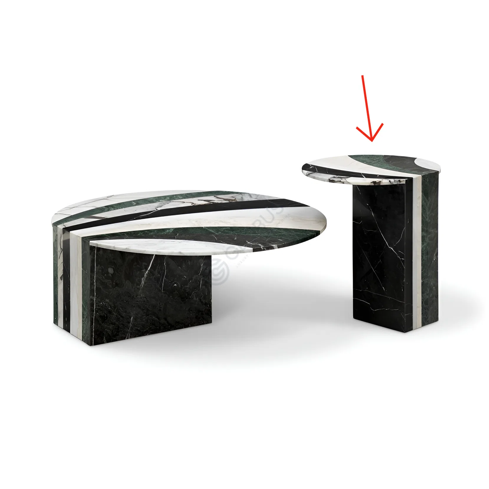 Introducing an exquisite addition to your modern living room - a coffee table crafted with unparalleled finesse. Meticulously designed using natural marble, this stunning piece effortlessly captures the essence of contemporary elegance. Infused with sleek lines and a minimalist allure, this coffee table effortlessly complements your modern decor, elevating the aesthetics of any space it graces. Crafted to perfection, its smooth marble surface exudes refinement and offers a luxurious platform for your everyday essentials. Immerse yourself in the understated sophistication of this modern marvel, as it seamlessly blends functionality with unparalleled style. Elevate your living room ambiance with this singular coffee table and indulge in an atmosphere that embraces opulence and transcends time.