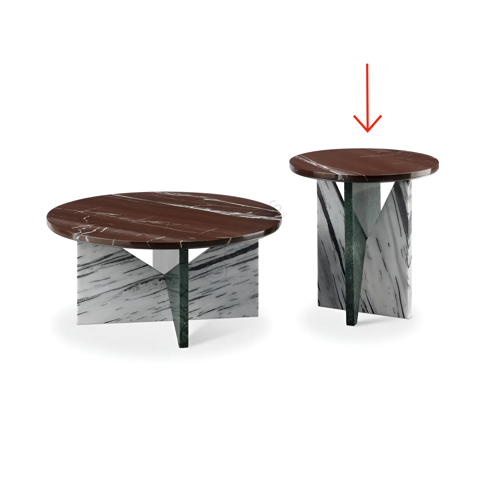 Introducing an exquisite addition to your modern living room - a coffee table crafted with unparalleled finesse. Meticulously designed using natural marble, this stunning piece effortlessly captures the essence of contemporary elegance. Infused with sleek lines and a minimalist allure, this coffee table effortlessly complements your modern decor, elevating the aesthetics of any space it graces. Crafted to perfection, its smooth marble surface exudes refinement and offers a luxurious platform for your everyday essentials. Immerse yourself in the understated sophistication of this modern marvel, as it seamlessly blends functionality with unparalleled style. Elevate your living room ambiance with this singular coffee table and indulge in an atmosphere that embraces opulence and transcends time.