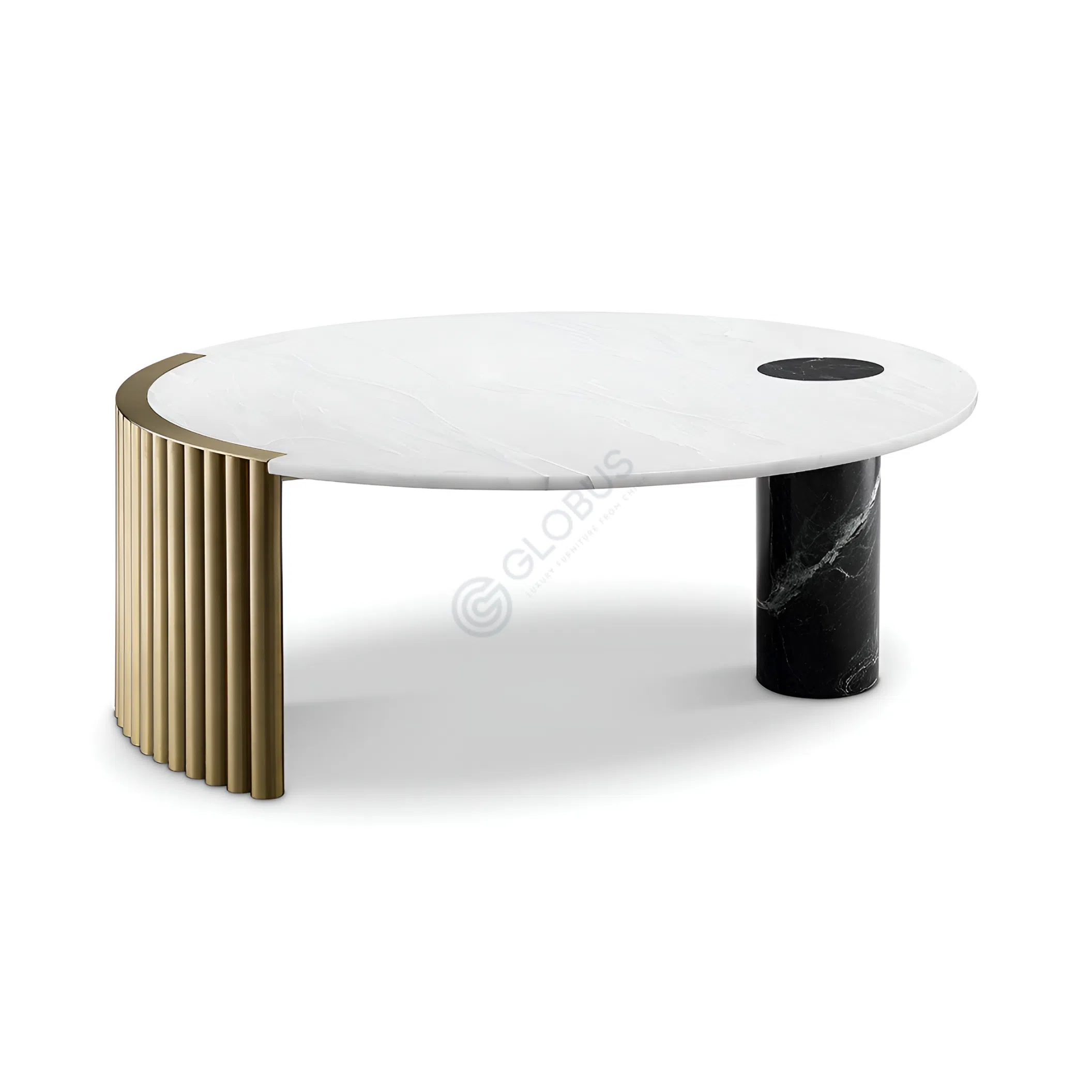 Introducing a stunning addition to your modern living room - the sleek and elegant side table. Crafted with a perfect blend of metal and natural marble, this exquisite piece effortlessly embodies contemporary design. Its glossy marble surface shines enticingly, adding a touch of luxury to your space. This side table serves as a versatile companion, providing a stylish platform for your essentials within arm's reach. Elevate your living room's aesthetic with this beautifully crafted modern side table, meticulously designed to transform your space into a haven of sophistication.