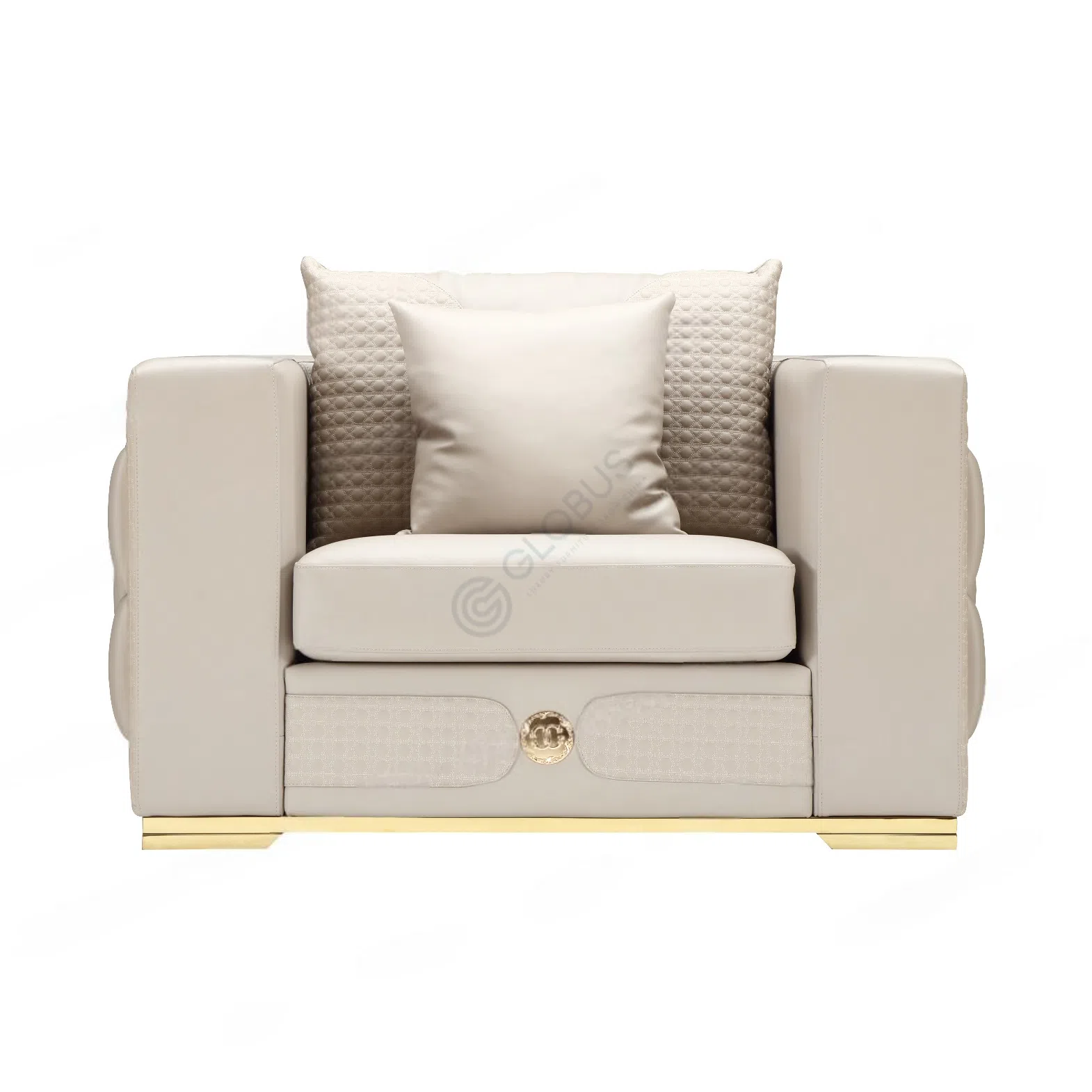 Crafted with a solid wood frame and supported by elegant metal legs, this sofa is built for both style and comfort. It provides a welcoming place to relax, making it a natural focal point in a contemporary home setting.