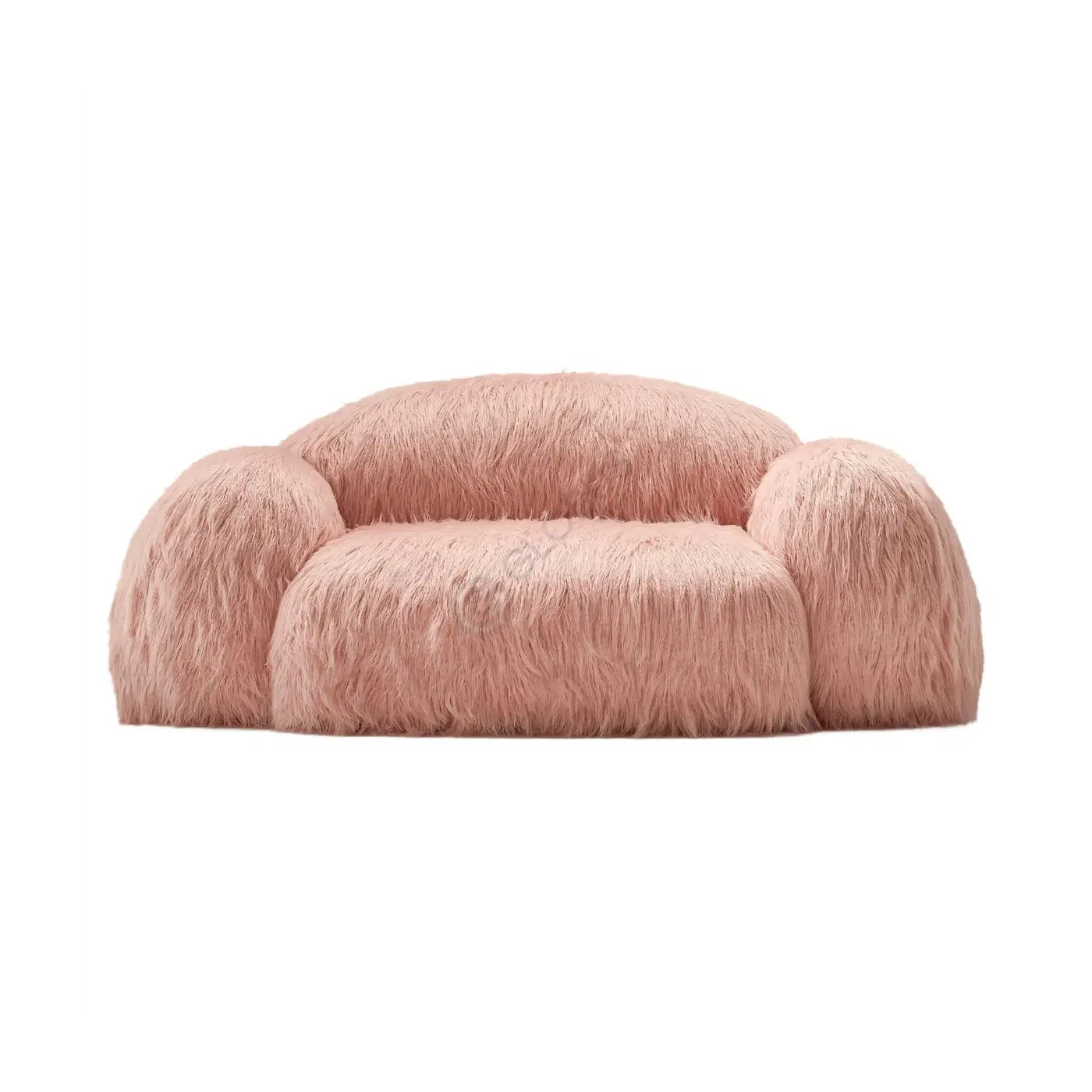 Presenting a modern sofa with a distinctive, sculptural form. The rounded modules, upholstered in a plush textile, offer an inviting, cloud-like appearance in a charming pink shade.