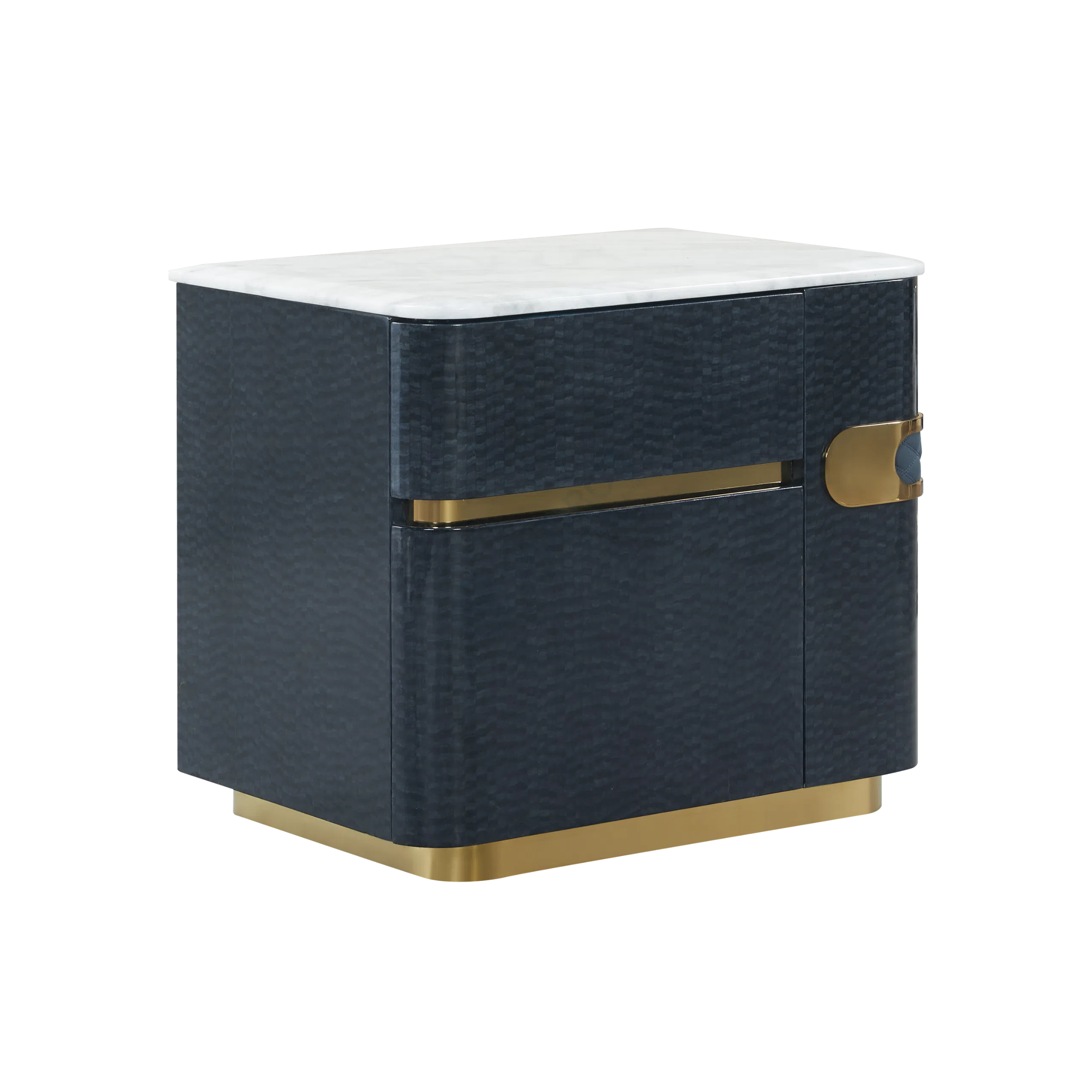 This side table presents a refined modern design. A top of natural marble provides a cool, sophisticated surface.