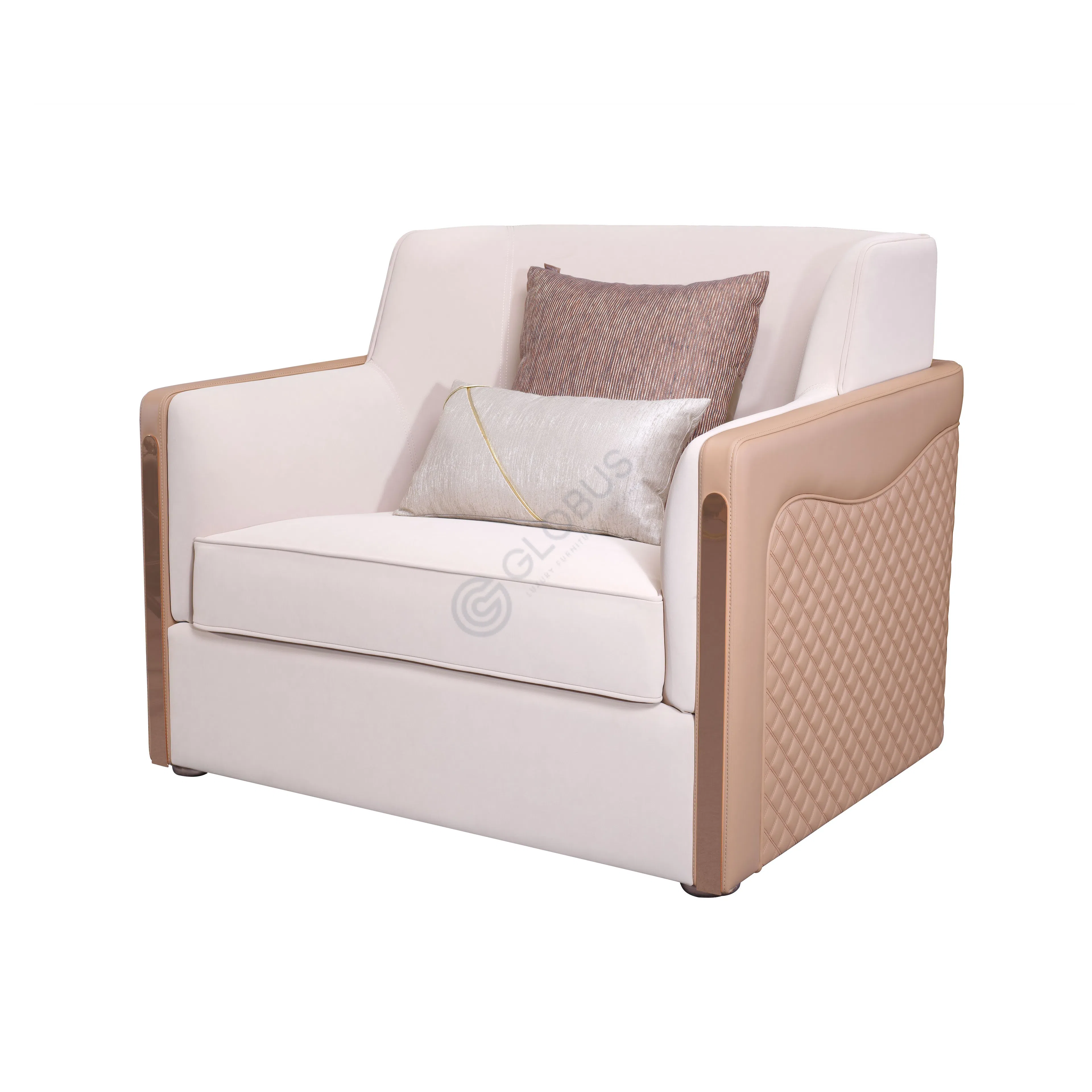 Crafted with a solid wood frame, this sofa offers sturdy and lasting support. The arms feature a distinctive design, combining smooth wood elements with a textured panel, adding a unique visual detail. The upholstery uses a blend of microfiber leather and suede leather, providing a combination of a pleasant feel and durable quality.