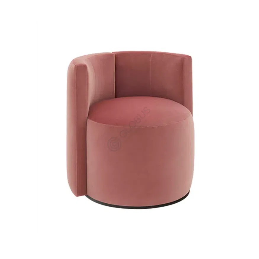 This pouf offers a distinctive modern profile with its inviting curved form. The design features a deeply cushioned, rounded seat base complemented by a structured, partial backrest.