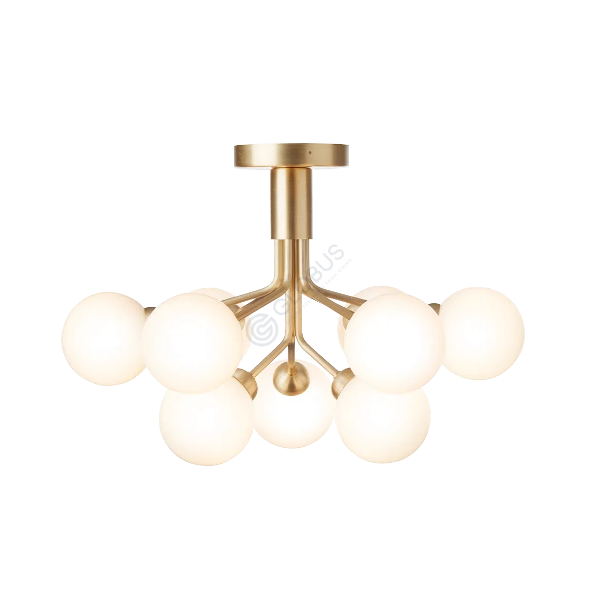 A striking pendant light presents a modern form, featuring a cluster of luminous glass spheres. Its design brings a touch of contemporary elegance to any space.
