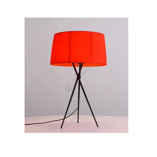 A prominent black textile shade features delicate pleating, creating a soft, diffused light perfect for setting a relaxed mood. The shade is supported by a slender tripod base made of carbon steel. The minimalist structure provides stable support while contributing to the lamp's airy and elegant appearance.
