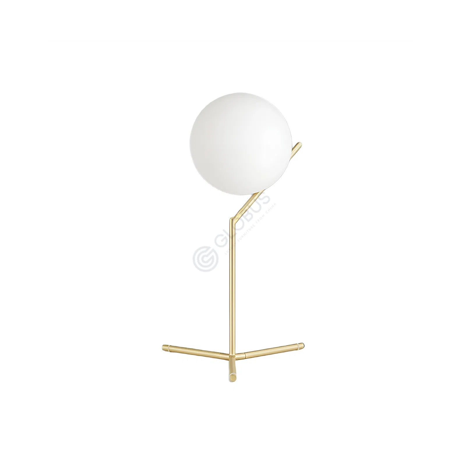 This modern pendant light offers a distinctive design, featuring a smooth glass sphere held in delicate balance by a geometric metal arm. Its clean lines and artistic composition provide a striking focal point for any contemporary interior.