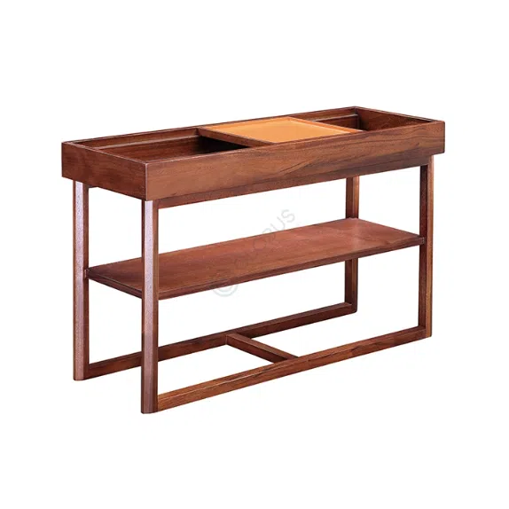Elevate your living space with the timeless elegance of our solid wood console. Crafted with meticulous attention to detail, this sleek and sophisticated piece embodies the perfect blend of functionality and style. The natural wood grain brings a warmth and authenticity to any room, while the sturdy construction ensures durability that stands the test of time. Its minimalist design, featuring clean lines and a subtle organic touch with an integrated bowl, complements both traditional and modern decors. Perfect for displaying cherished mementos or organizing everyday essentials, this console table invites a sense of harmony and craftsmanship into your home.