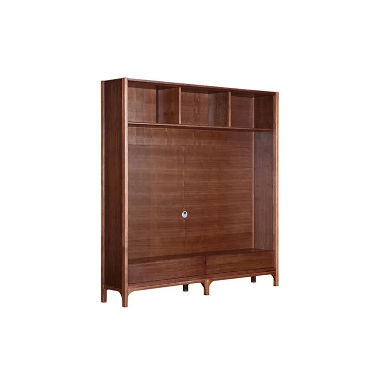 This piece offers versatile organization through a mix of open shelving and concealed storage. Display your cherished books and objects on the spacious shelves while keeping essentials neatly tucked away behind the smooth, contrasting panel doors. A lower open compartment provides additional space.