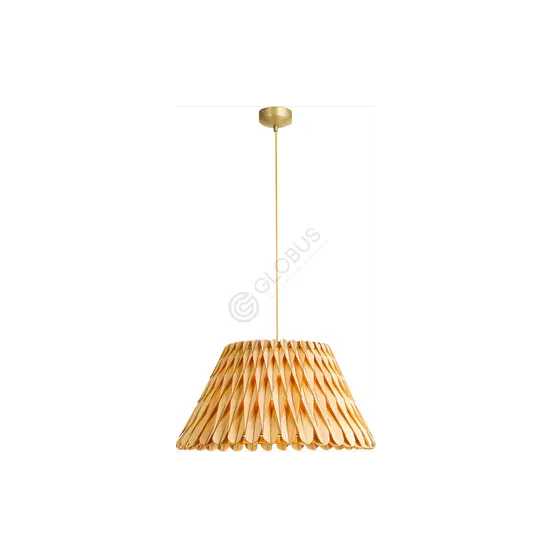 This table lamp features a distinctive shade crafted from individual pieces of solid wood. These elements are intricately arranged to create a dynamic, textured surface that filters light beautifully, casting a soft and inviting glow. The natural wood tone provides warmth and adds an organic touch to the design.