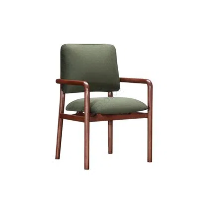 This armchair offers a clean, modern aesthetic with a focus on understated elegance. Its structure features a refined frame crafted from solid wood, presenting smooth lines and a warm, inviting tone.