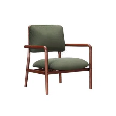 Designed for comfort, the chair features a cushioned seat and backrest upholstered in a high-quality textile. The internal structure, including durable plywood elements, ensures lasting support and shape. The solid wood frame provides a robust foundation with smooth, rounded armrests and elegantly tapered legs, embodying modern simplicity.