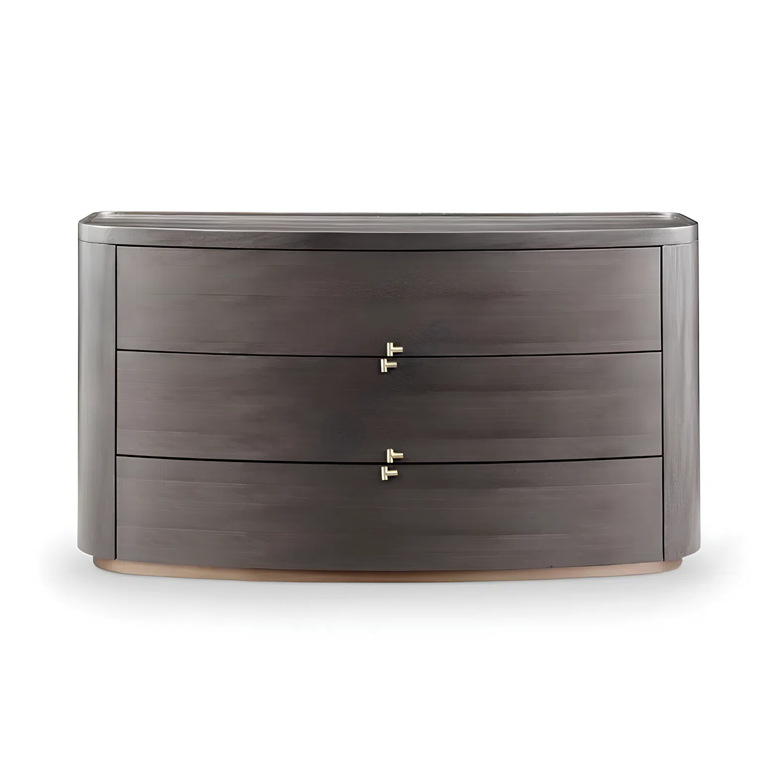 Thoughtfully designed, this sideboard includes three spacious drawers, offering practical storage for various essentials. Its versatile design and luxurious material palette make it an ideal piece to elevate a contemporary space, blending functionality with high-end style.