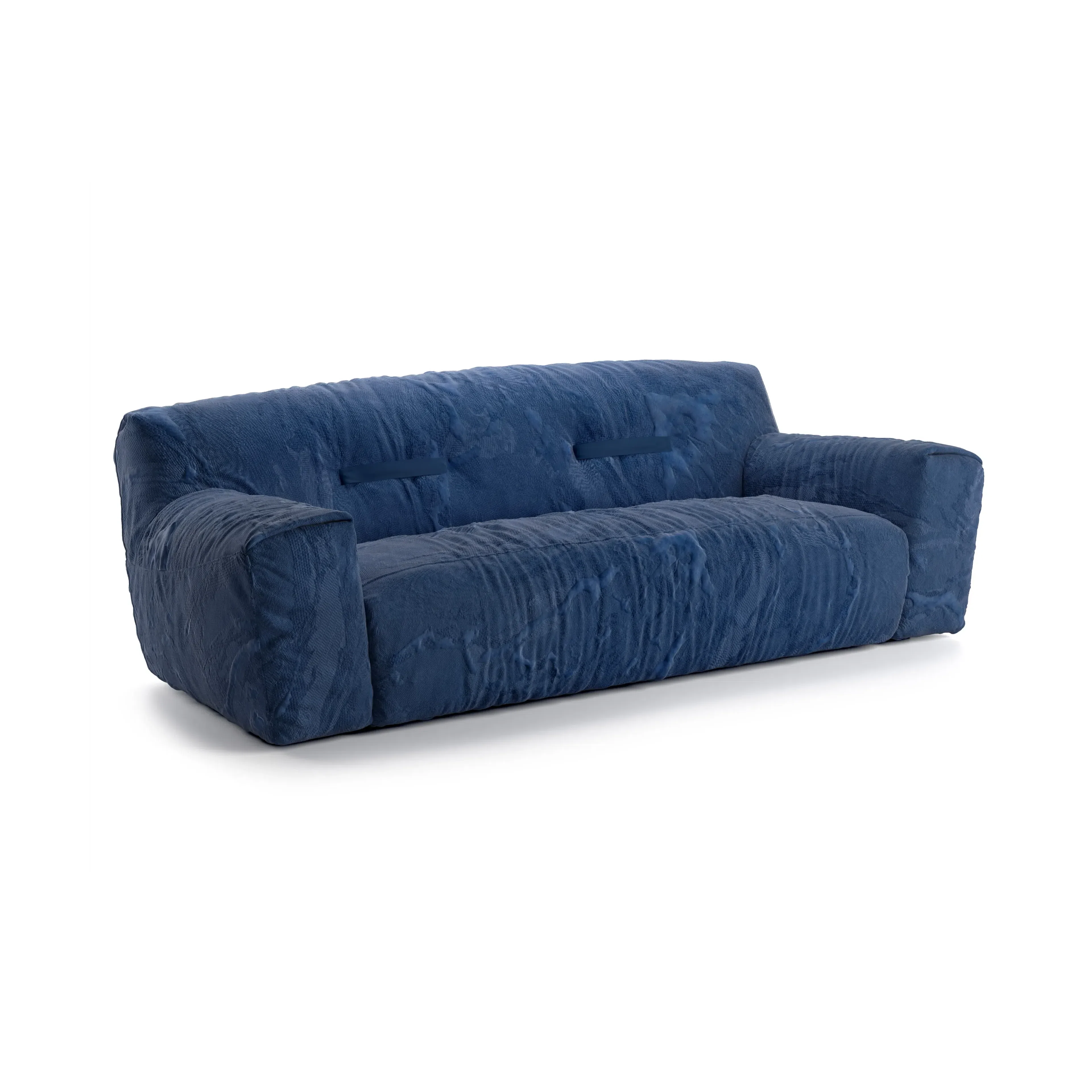 Sink into the ample seat cushion, which drapes gently, enhancing the armchair's laid-back yet sophisticated aesthetic. The tactile quality of the fabric complements the armchair's rounded shape, making it a perfect spot for unwinding. Its substantial form provides solid support, promising lasting comfort.