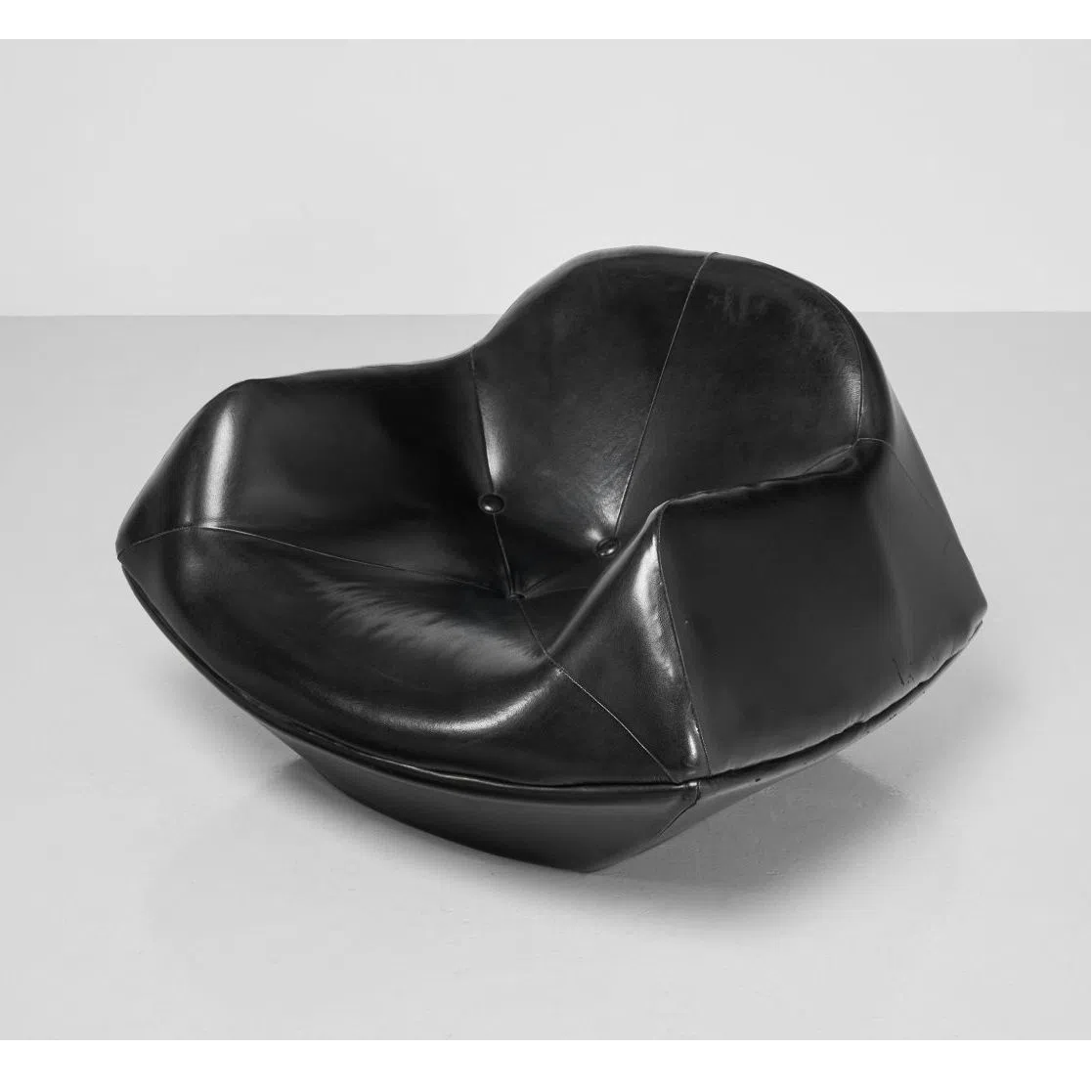 The surface of the sofa features subtle tufting, adding a touch of detail to the otherwise smooth, flowing form. This piece is designed to be a focal point, seamlessly blending contemporary style with functional seating for a refined living space.