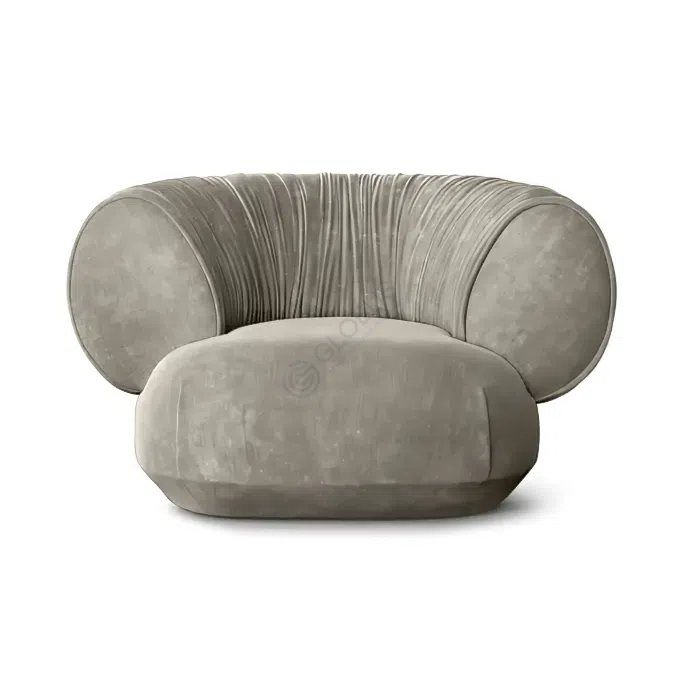 A defining feature is the striking ribbed or pleated detail along the high backrest or arm. This intricate texture provides visual depth and sophisticated craftsmanship, contrasting beautifully with the smooth seat.
