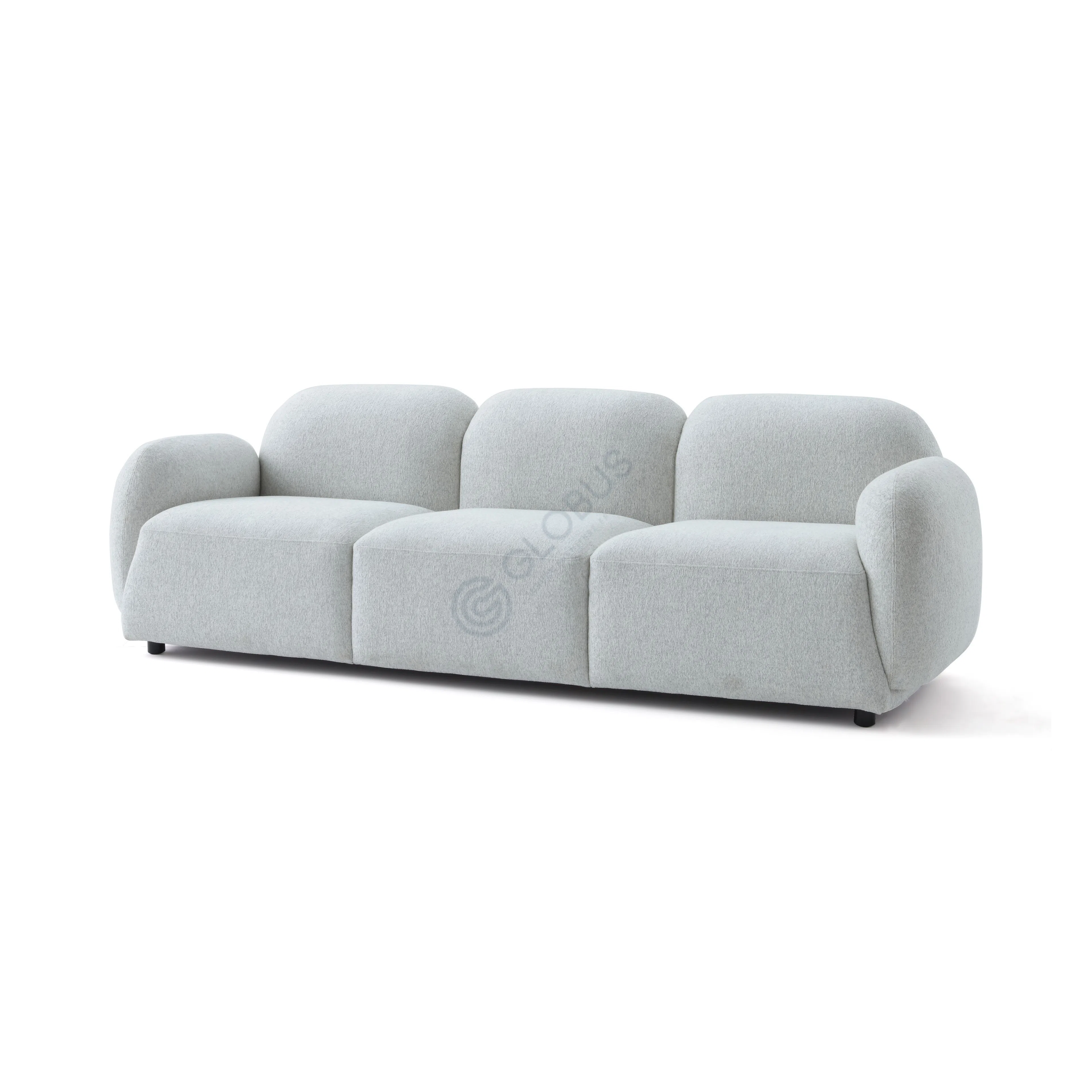 This modern armchair features a distinctly sculptural form, presenting soft, inviting curves that create a plush silhouette. Upholstered in a vibrant, textured textile, its generous proportions offer a visually comforting presence in any contemporary living space.