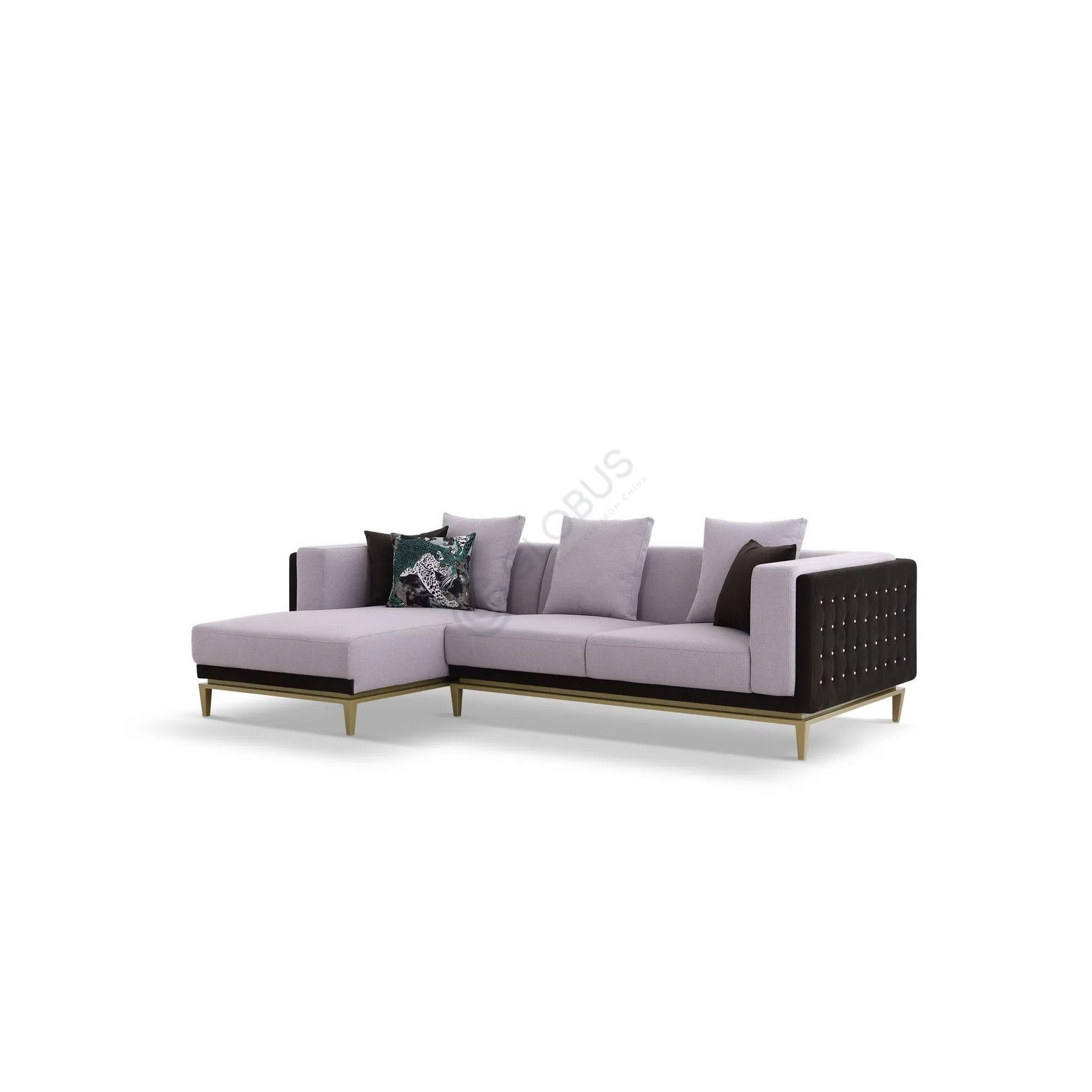 This modern sofa presents a sophisticated centerpiece for a contemporary living room. Its design combines clean lines with elegant details, offering both comfort and visual appeal. The generous seating provides ample space for relaxation and socializing.