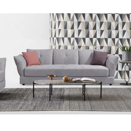Crafted with comfort and durability in mind, this sofa features soft textile upholstery over resilient cushioning. The internal structure is built using solid wood and plywood, ensuring a sturdy foundation. Details like the subtly tufted cushions and the gracefully curved armrest on one end add a touch of elegance to its modern design.