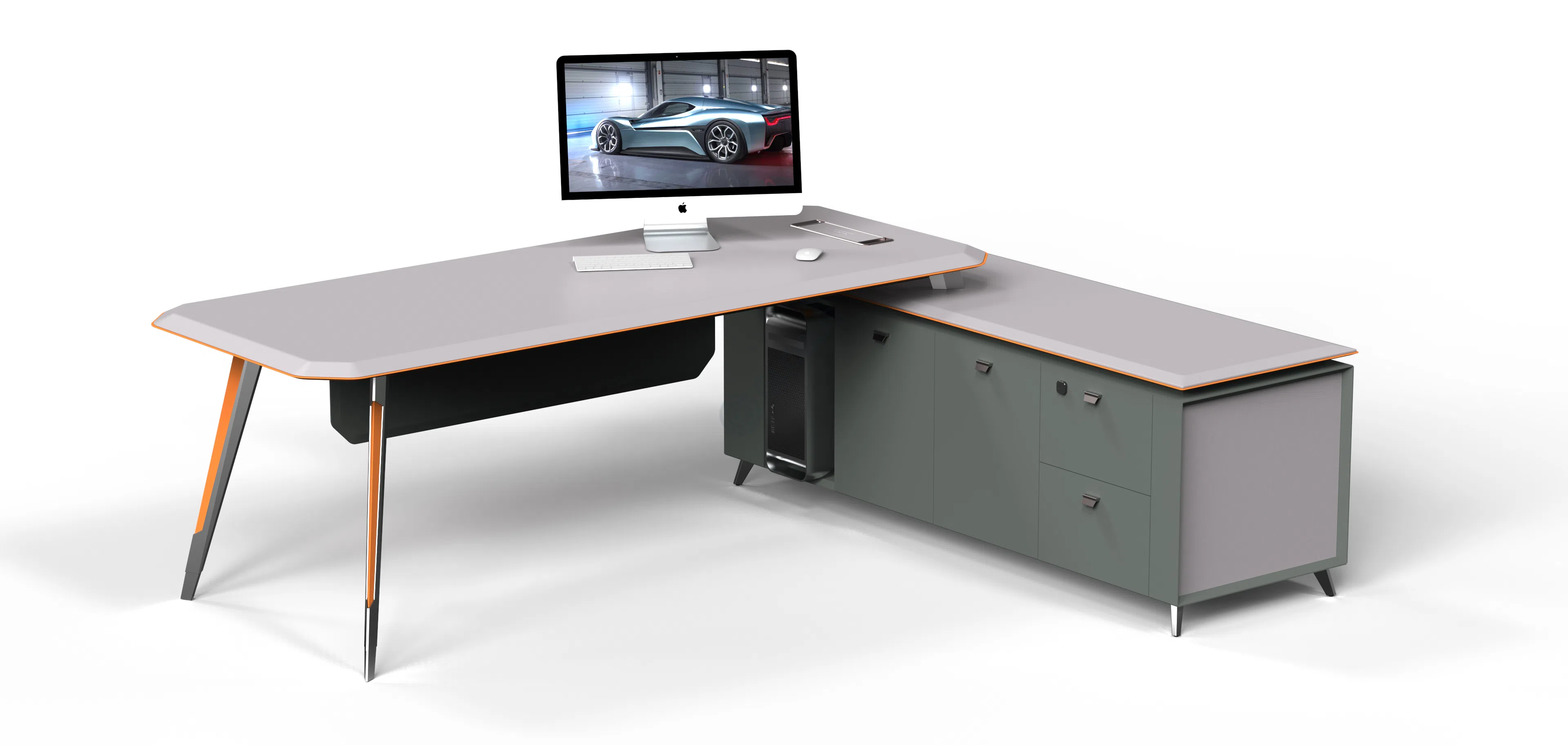 Introducing our sleek and contemporary office desk that combines style and functionality seamlessly. Crafted with high-quality materials like MDF, strong metal frame, and refined leather accents, it exudes modern elegance that will elevate any workspace.