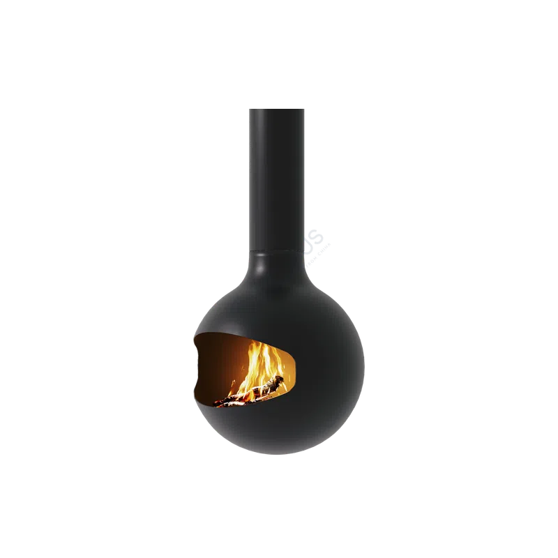 Elevate your living space with a modern fireplace that offers a striking focal point. This suspended design hangs elegantly from the ceiling, its form a graceful ellipse crafted from durable carbon steel. The deep, dark finish enhances its contemporary appeal, allowing it to integrate seamlessly into sophisticated interiors while also standing out as a piece of sculptural art.