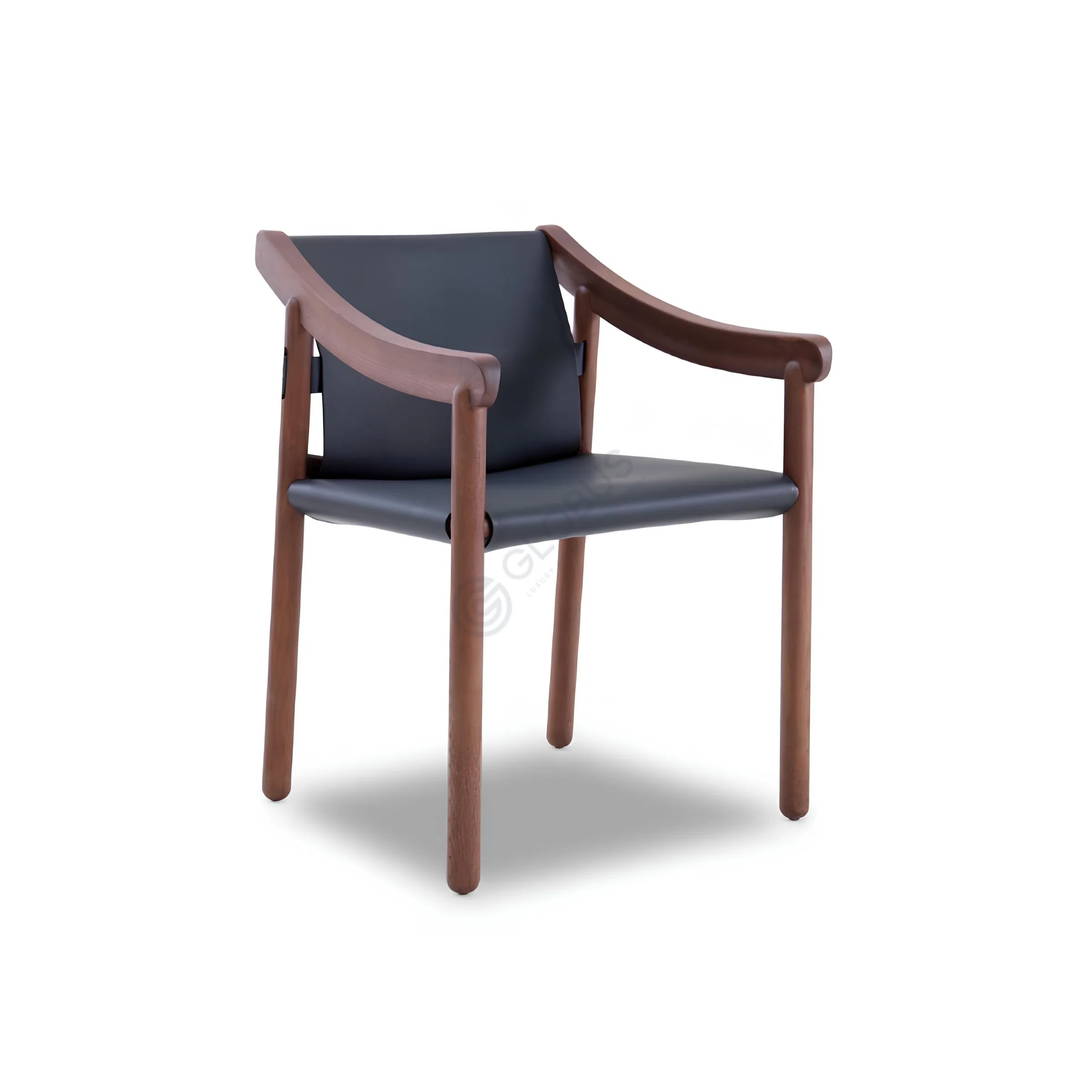 This armchair combines timeless elegance with modern comfort. Crafted from solid wood, its sturdy frame offers durability and a natural aesthetic. The seat and backrest are upholstered in eco-friendly Saddle Microfiber, providing a soft and smooth texture that enhances comfort while being easy to maintain. The gently curved armrests add a touch of sophistication and ensure ergonomic support. Its minimalist design makes it a versatile addition to any interior, blending seamlessly with various styles.