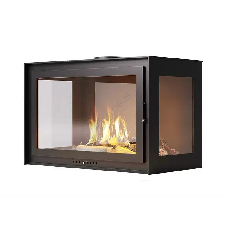 Crafted from durable cast iron, the frame ensures longevity and efficient heat distribution. The tempered glass provides safety and a clear view of the burning logs, enhancing the visual comfort of the fireplace without obstruction. This combination of materials highlights both functionality and aesthetic appeal.