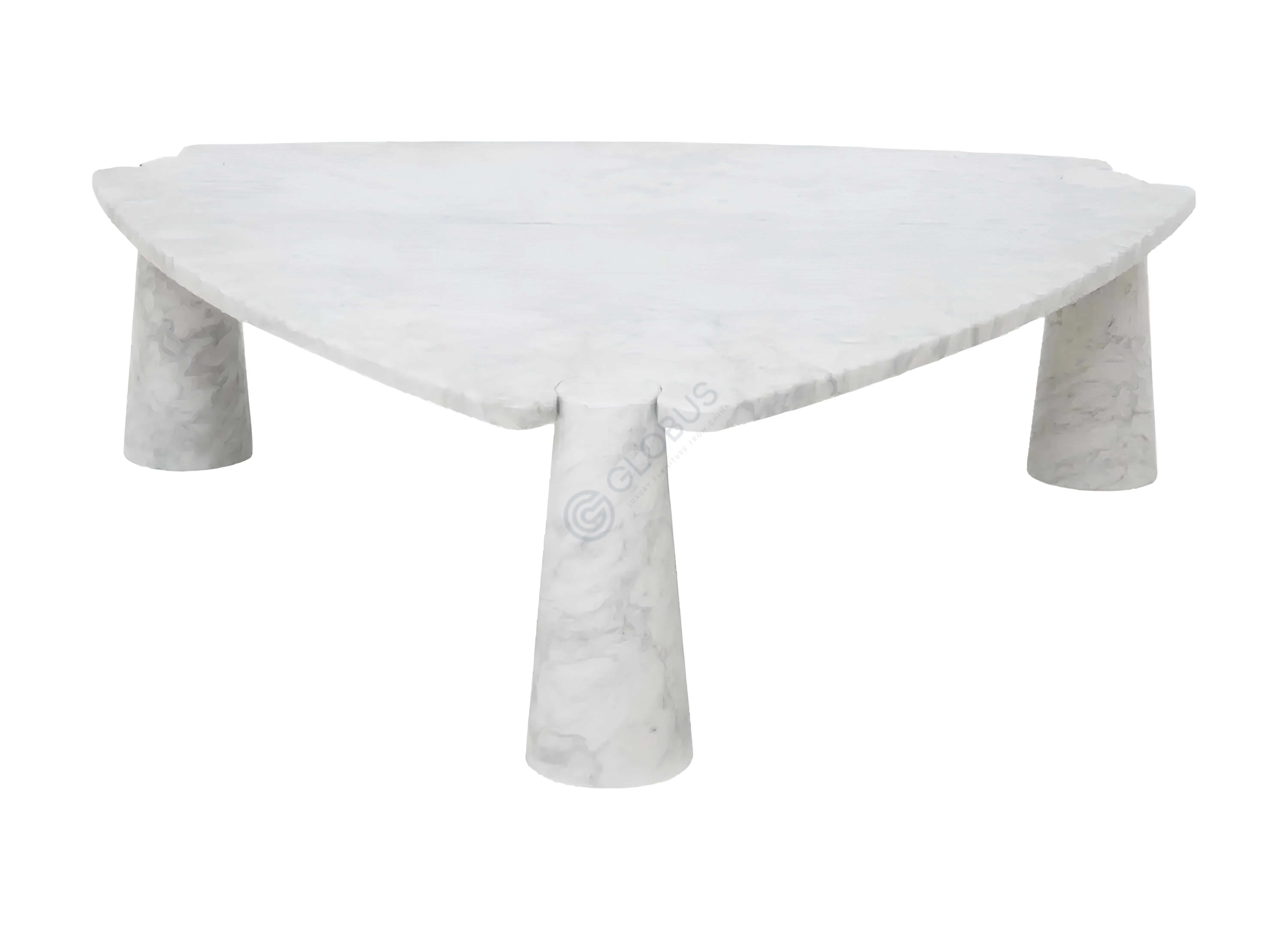 The design embodies modern sophistication with a gracefully tapered base and an organically shaped table top. The unique form creates a sculptural silhouette that stands out as a work of art while maintaining functional simplicity. It is a piece that enhances its surroundings through its considered form and luxurious material.