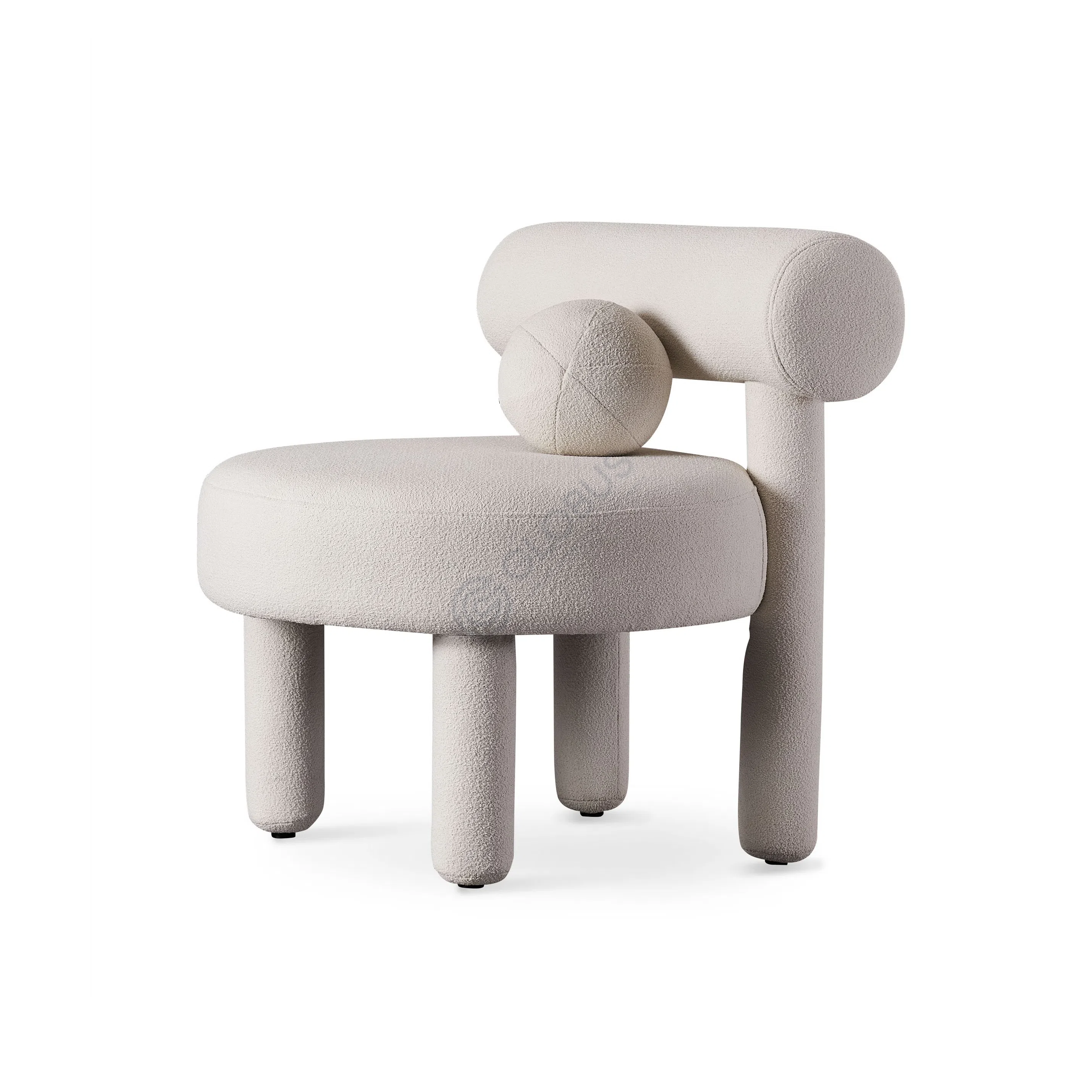 This chair combines a striking modern aesthetic with thoughtful craftsmanship. Its cylindrical backrest and generously cushioned seat are upholstered in a refined, light textile, offering both comfort and visual appeal. The clean lines and softened forms deliver a contemporary look that suits minimalist spaces, while the fabric’s gentle texture creates an inviting touch for living room or bedroom settings.