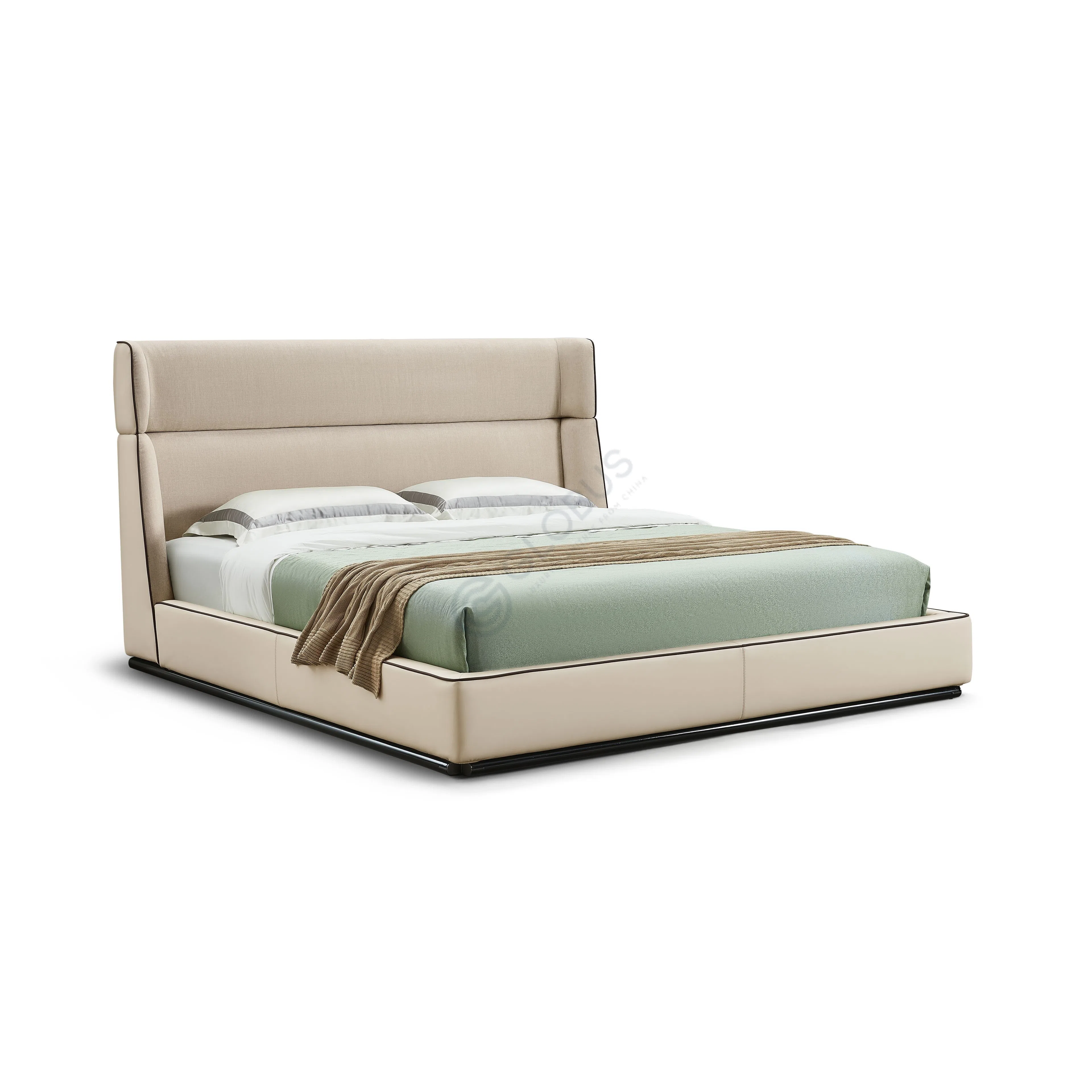 The design includes convenient storage with its two smoothly integrated drawers, perfect for keeping nighttime essentials neatly organized. The soft curves and clean lines contribute to its understated luxury.