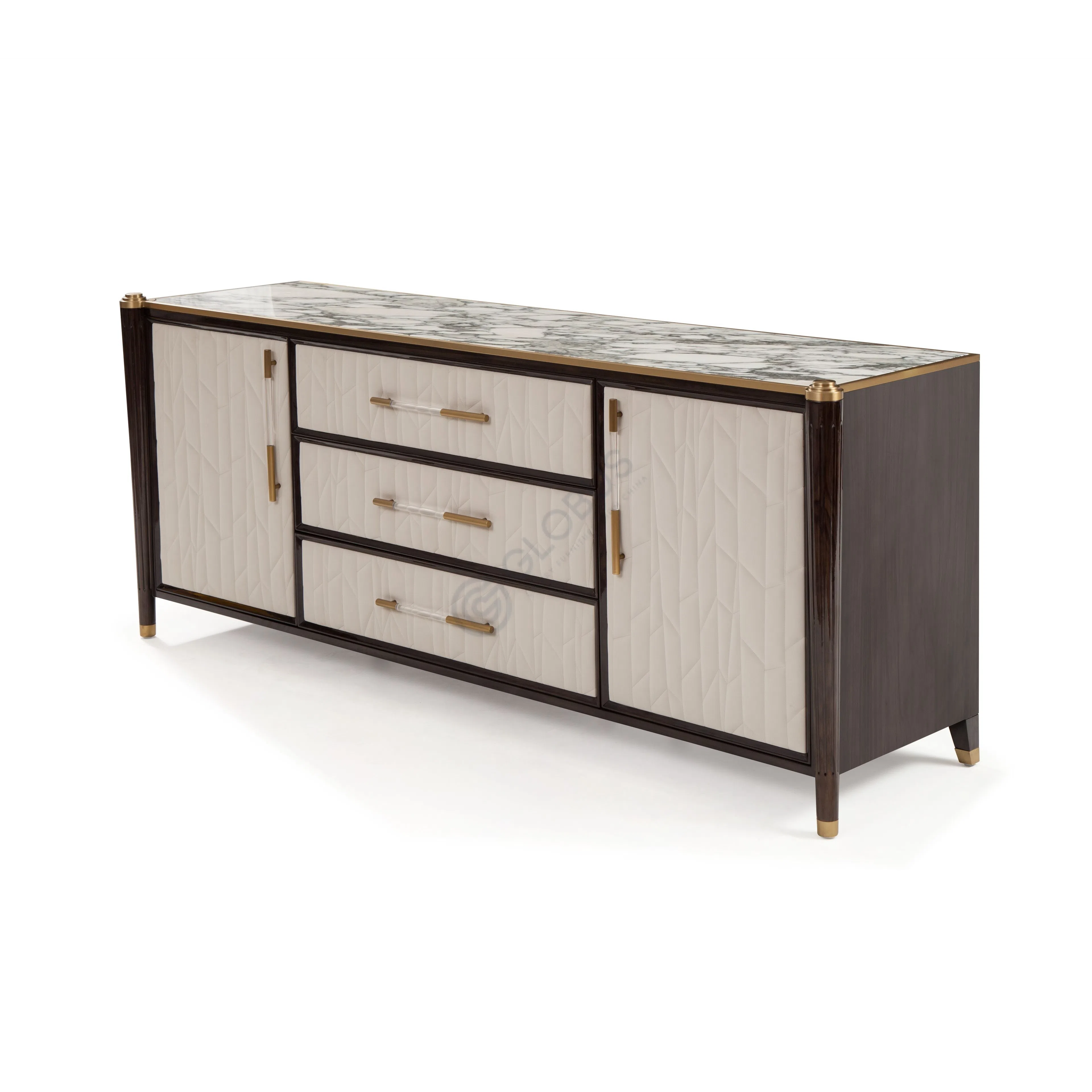 Designed with both form and function in mind, this piece provides a sophisticated base for your media equipment while contributing to the aesthetic of the room. Its clean lines and luxurious material combination make it a suitable addition to a contemporary living room or bedroom setting.