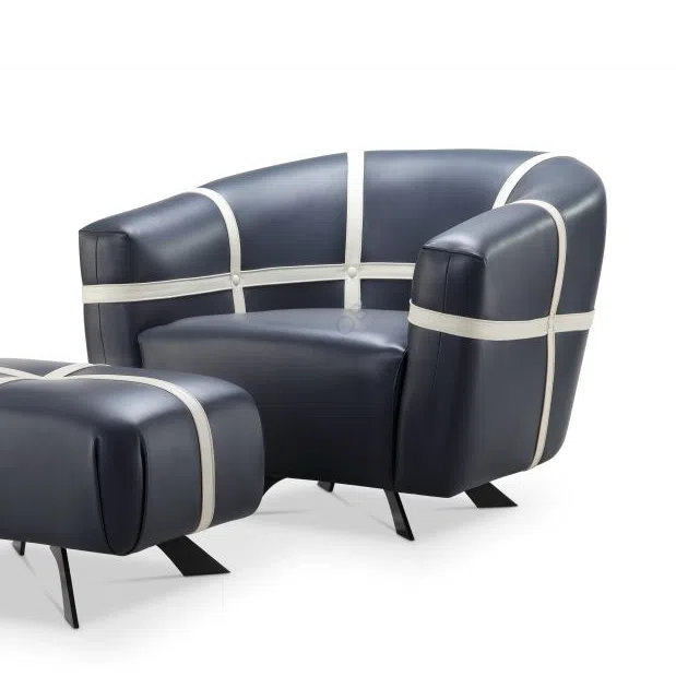 Crafted with precision, this pouf combines the comfort of premium Napa leather with the structural integrity of solid wood and stainless steel elements. The quality of the materials ensures both lasting beauty and a comfortable, supportive feel. Every detail reflects a commitment to superior craftsmanship and sophisticated design.