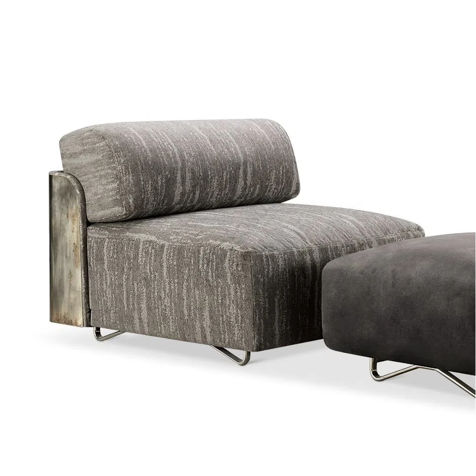 This modern sofa seamlessly blends style and strength, making it a standout piece for any living space. Crafted with a solid wood and plywood frame, it offers robust support and durability. The stainless steel accents provide a sleek, contemporary touch, while the textile upholstery delivers a soft and inviting surface. The addition of metallic side panels enhances its unique design, making it both functional and visually striking. Perfect for those who appreciate clean lines and premium materials, this sofa is designed for comfort and lasting elegance.