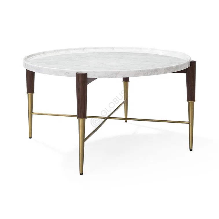 This modern side table presents a beautiful combination of materials. Its circular top is crafted from genuine natural marble, featuring unique veining that adds an element of sophisticated elegance to the surface.