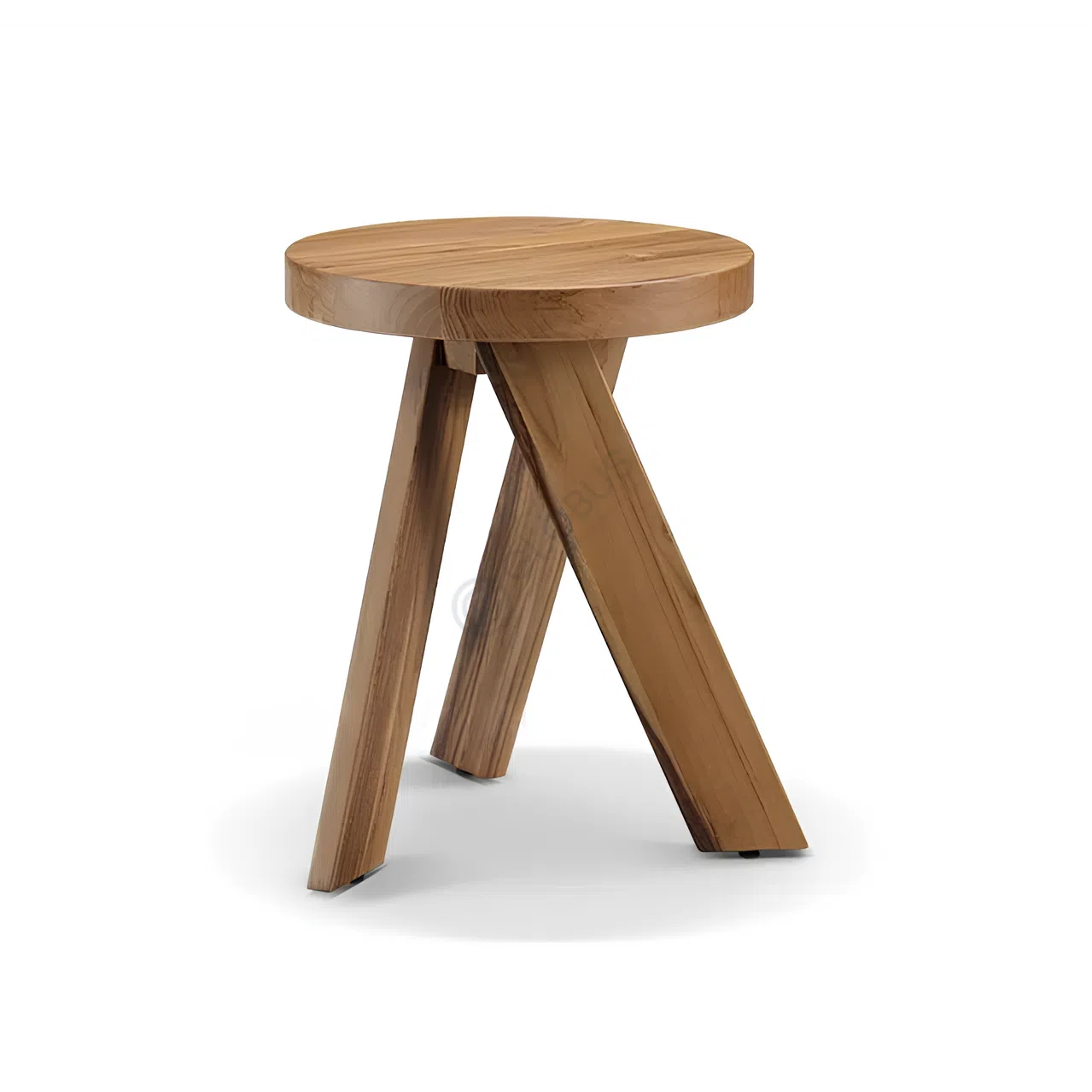 Round dining table in solid wood with a clean modern profile and an eco-style character. The generous circular top showcases natural grain and smooth edges. Three wide, angled legs meet at the center to create a stable, architectural base with comfortable legroom all around.