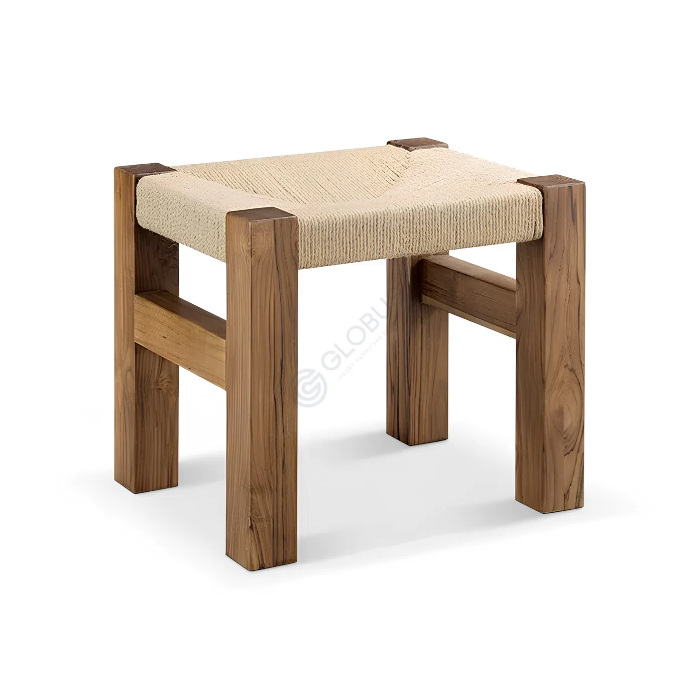 A streamlined outdoor banquette with a solid wood frame and a tightly woven rope seat, it brings a calm modern look with an eco-style sensibility. The warm wood grain contrasts gently with the natural rope, creating a balanced, tactile surface.