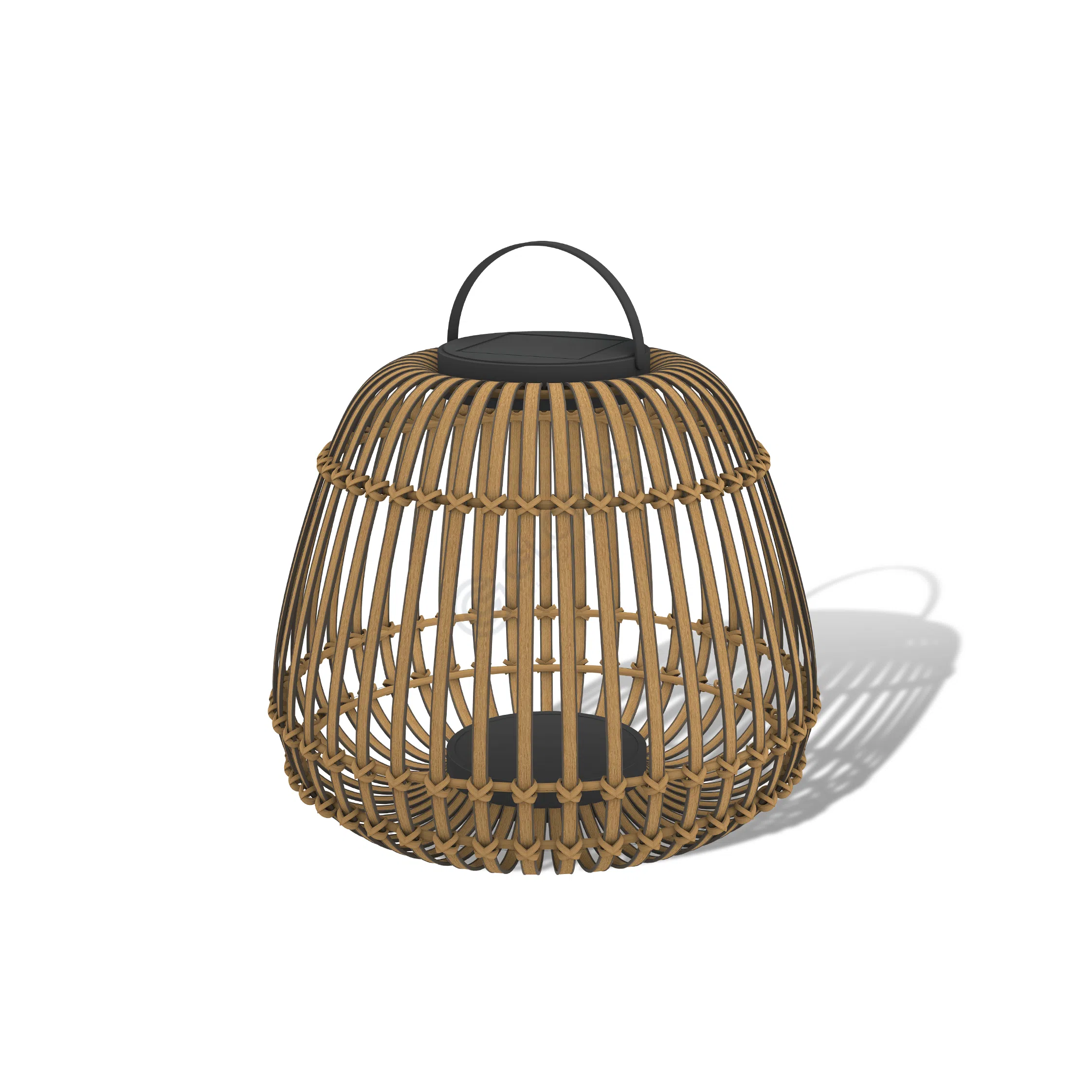 Illuminate your outdoor spaces with this stylish solar-powered lamp, designed to enhance both functionality and aesthetics. Crafted from durable aluminum and synthetic rattan, it combines modern design with natural elements, making it a perfect addition to any patio or garden. The lamp features a sleek silhouette that complements various outdoor settings, while its solar-powered functionality ensures energy efficiency and ease of use. As the sun sets, the warm glow of the light creates a welcoming atmosphere, ideal for gatherings or quiet evenings. Whether placed beside a cozy chair or as part of a larger outdoor arrangement, this lamp not only provides illumination but also adds a touch of elegance to your surroundings. Enjoy the beauty of outdoor living with this practical and attractive lighting solution.