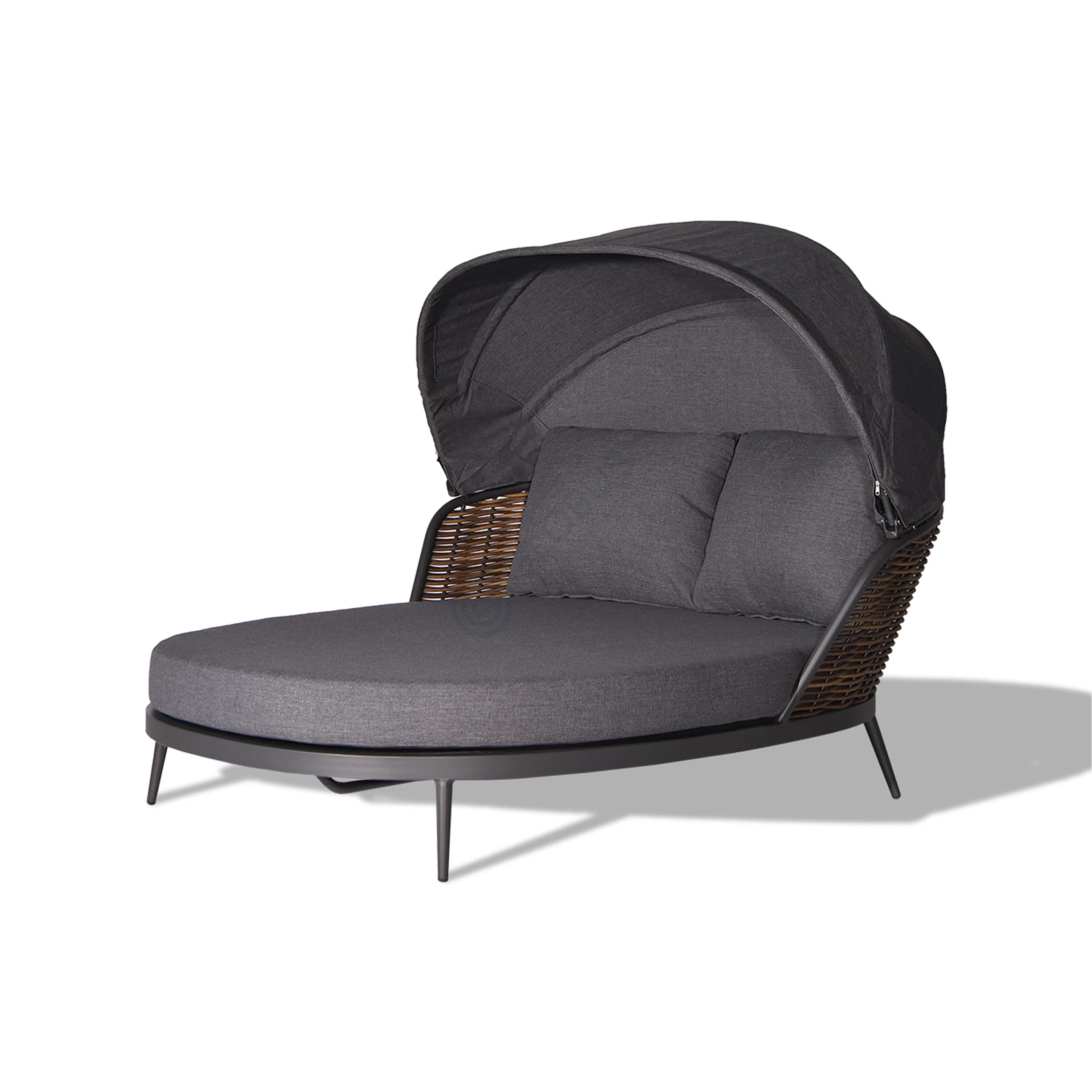 A plush textile cushion completes the design, offering inviting comfort for extended lounging. This piece is ideal for creating a tranquil retreat and enjoying the outdoors in style. It combines style, comfort, and durability, making it a refined choice for enhancing any outdoor living space.