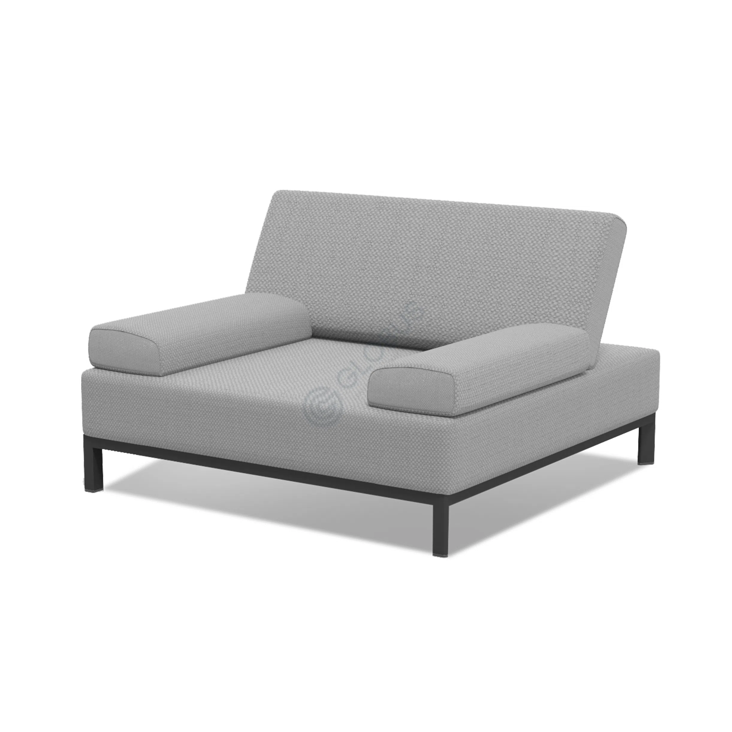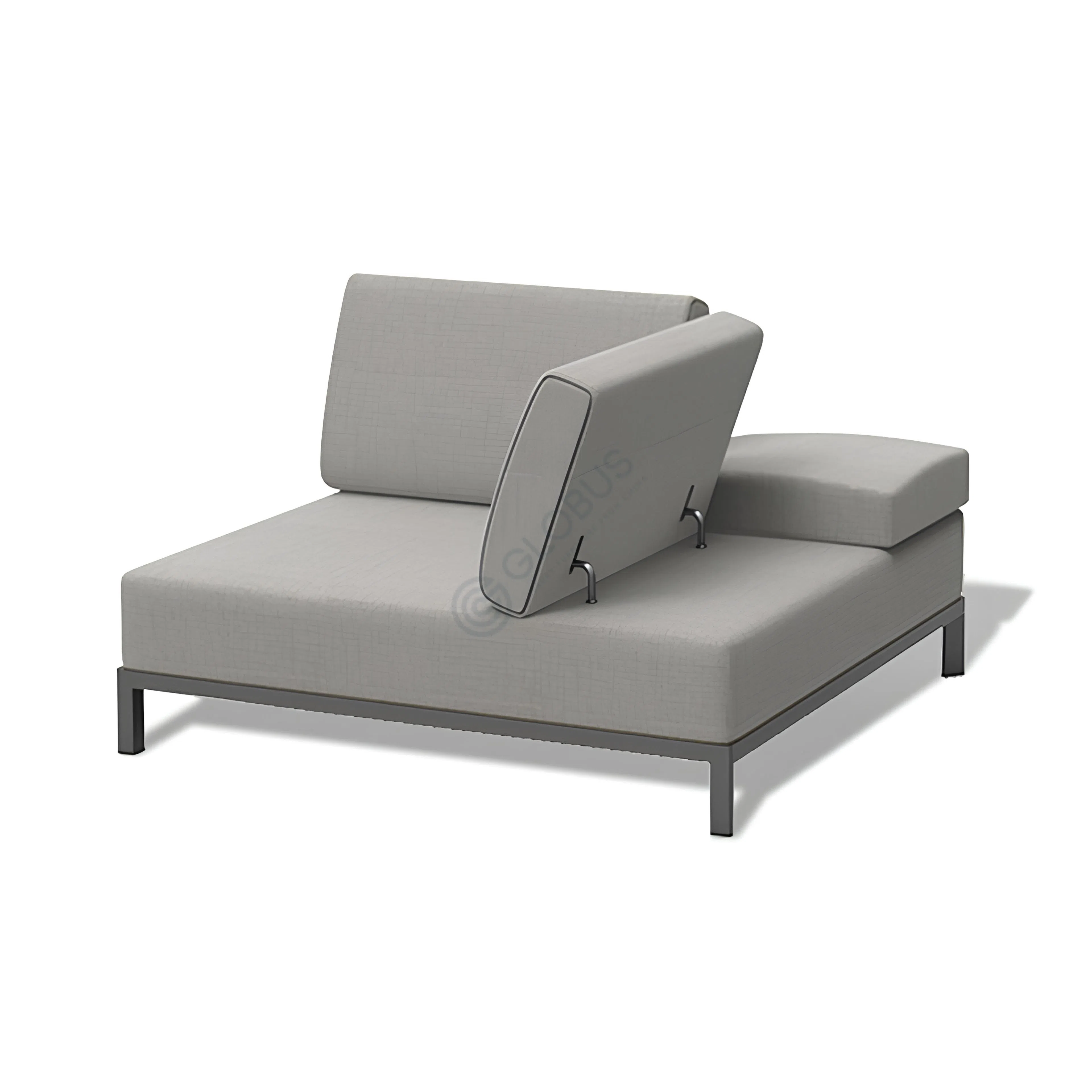 The foundation of the banquette features a robust frame crafted from aluminum. This material choice provides essential stability and is well-suited to withstand various outdoor elements, ensuring longevity and ease of maintenance in garden, terrace, or poolside environments.