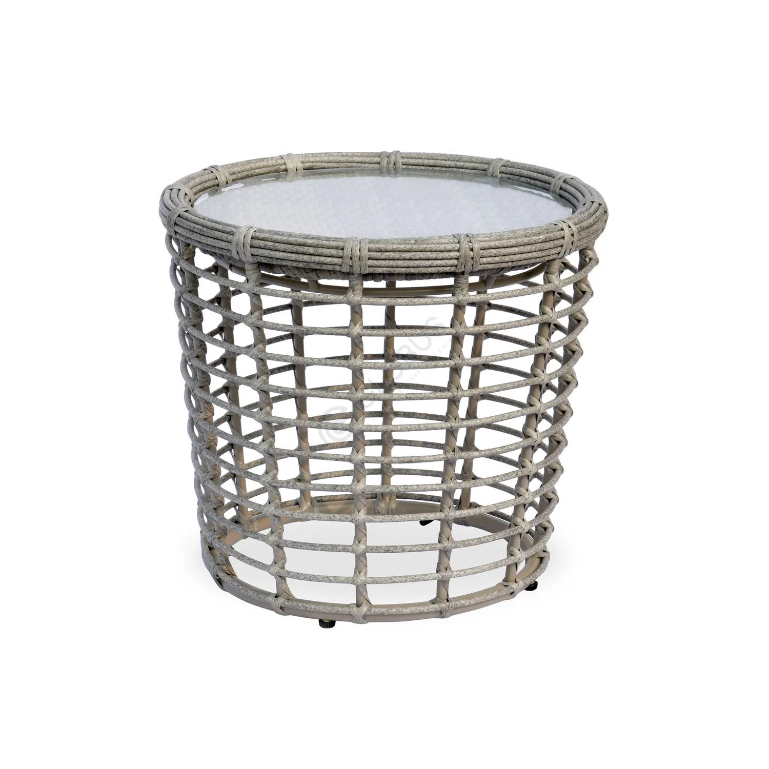 Crafted for outdoor living, this piece combines a durable aluminum frame with an elegant synthetic rattan weave. This blend of materials ensures longevity and resistance to the elements, making it an ideal addition to a garden, terrace, or poolside area.