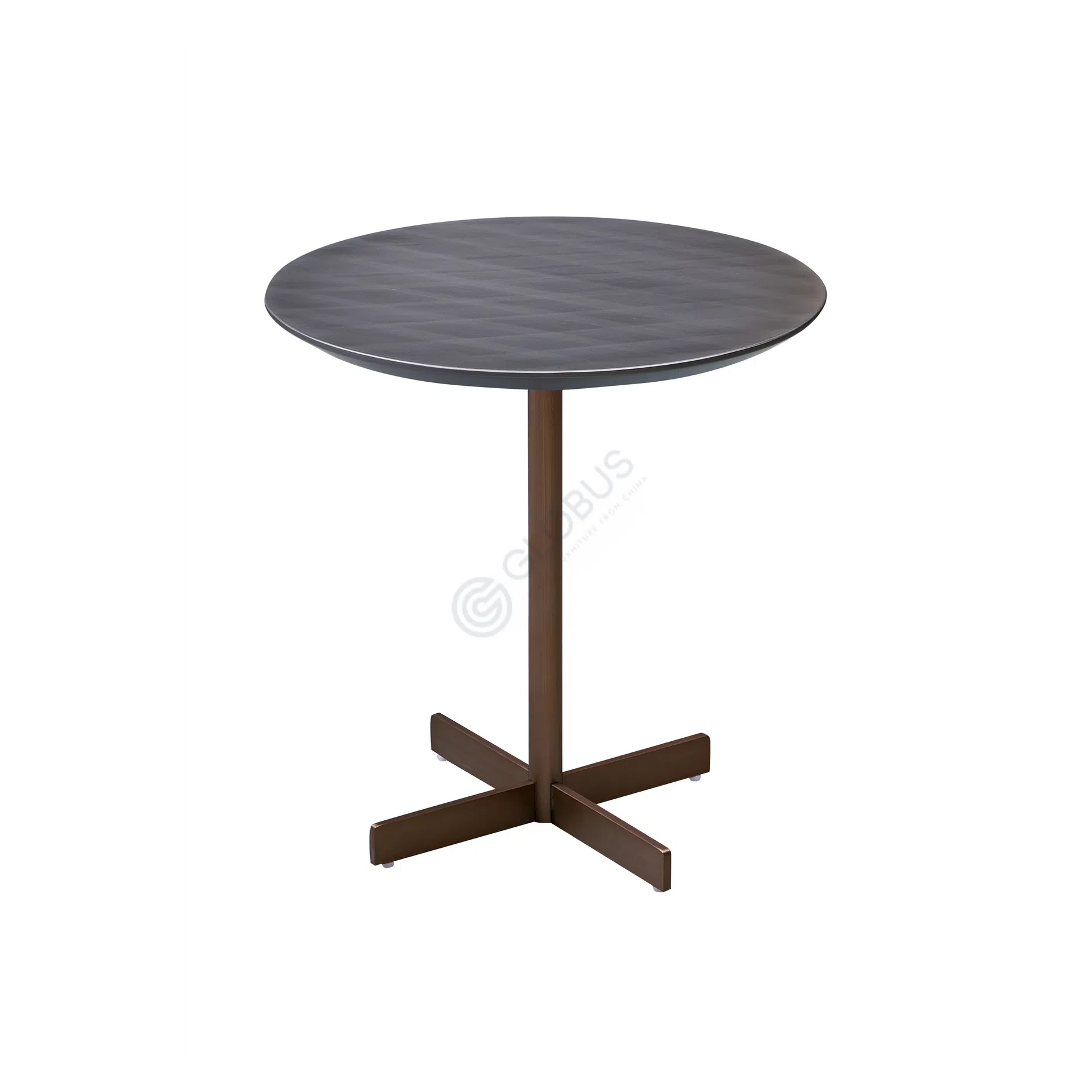 Supported by a slender metal column that flows into a balanced cross-shaped base, the table maintains a minimalist aesthetic while providing firm support. This considered design ensures both style and functionality.