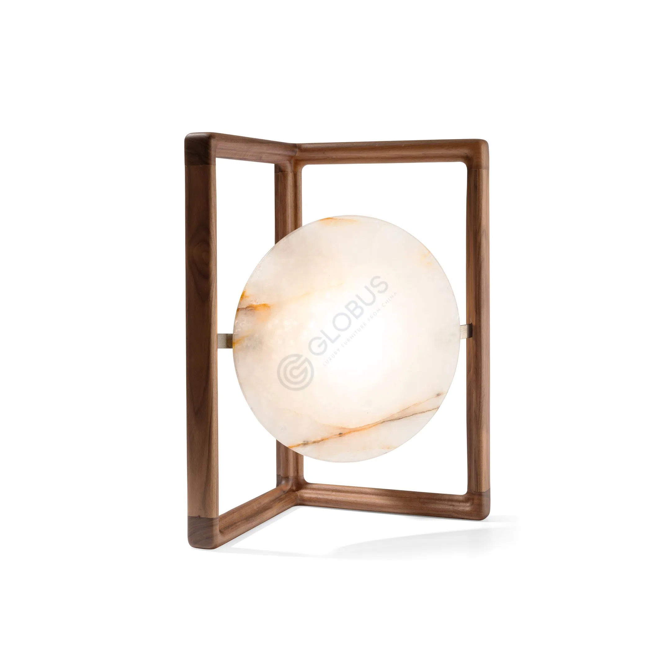 When illuminated, the stone diffuses the light softly, creating a warm and inviting glow that highlights its exquisite texture and color variations. The minimalist wooden frame provides a contemporary structure, balancing the inherent richness of the stone.