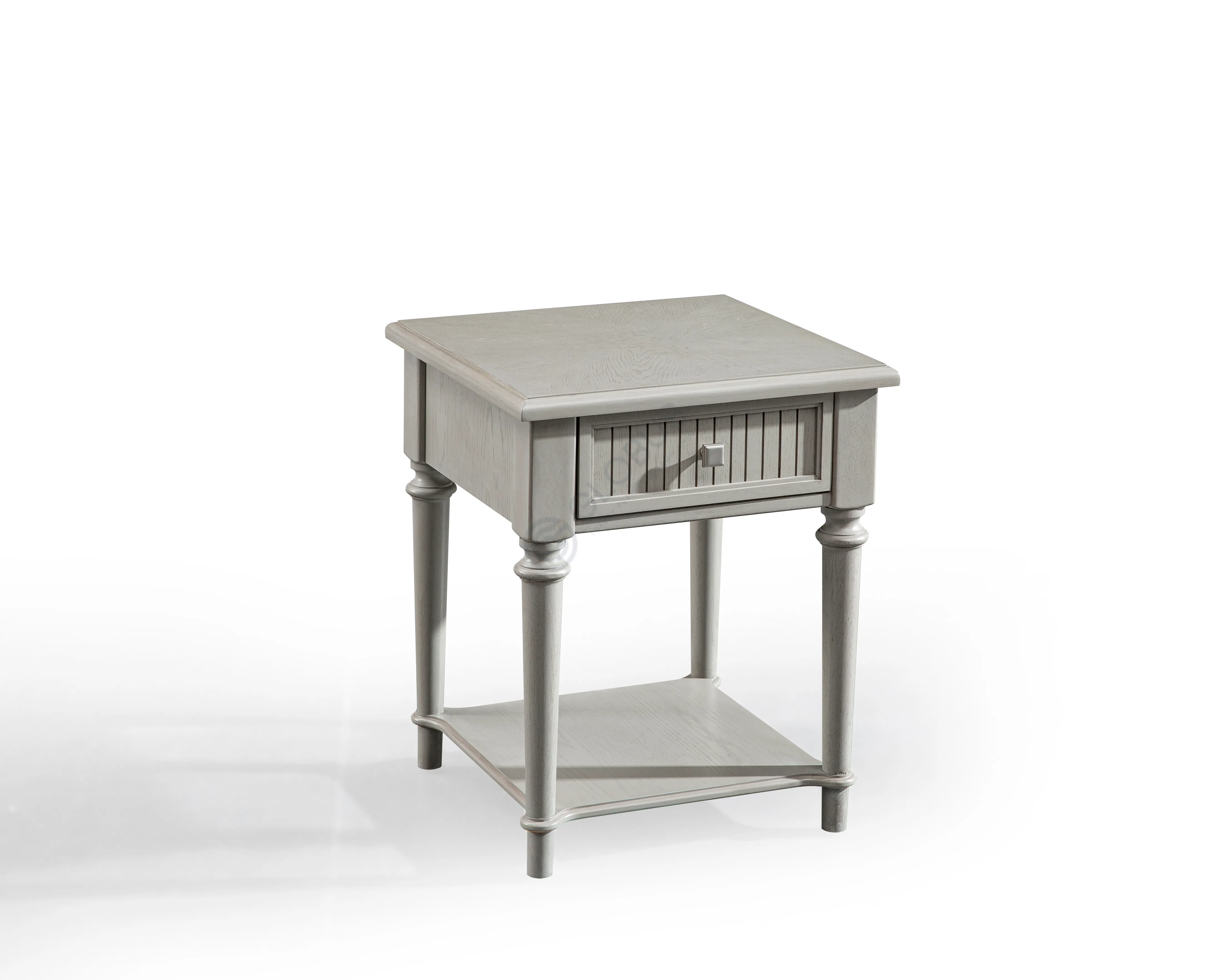 A refined neo-classic coffee table for the living room with a calm gray finish and softly rounded edges. Turned legs and a fluted front panel give it a balanced, timeless look.