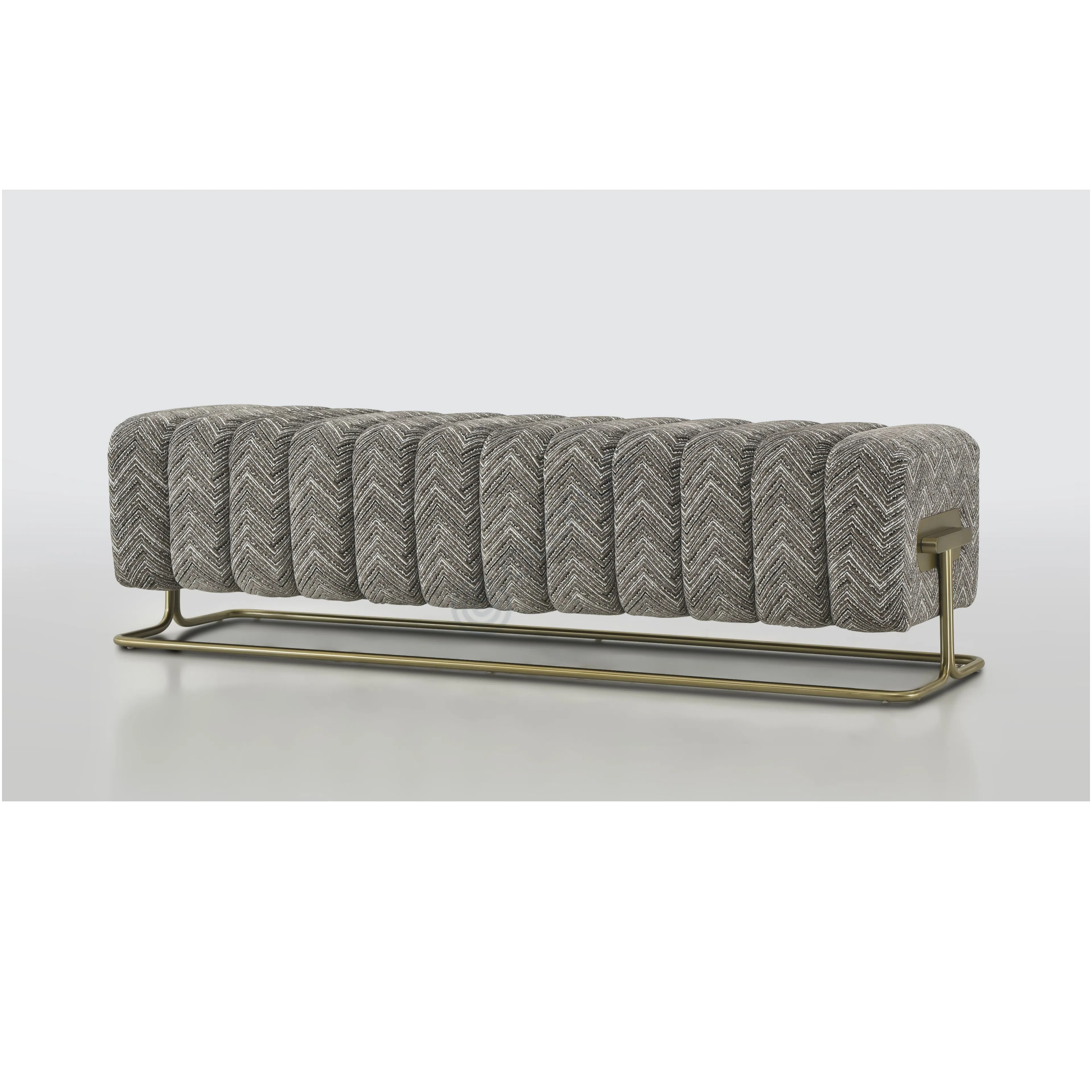This armchair combines modern elegance with Art Deco-inspired details, making it a sophisticated addition to any living room. Its sleek design features a plush, padded seat and backrest upholstered in high-quality textile, ensuring exceptional comfort and durability.