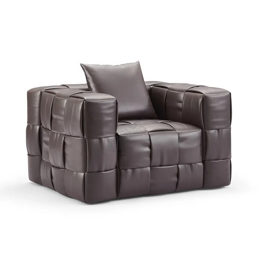 This modern sofa combines sleek design with exceptional craftsmanship, making it a standout piece for any living room. Its clean, structured silhouette is complemented by a captivating interwoven pattern that adds a subtle texture, enhancing its visual appeal while maintaining functionality.