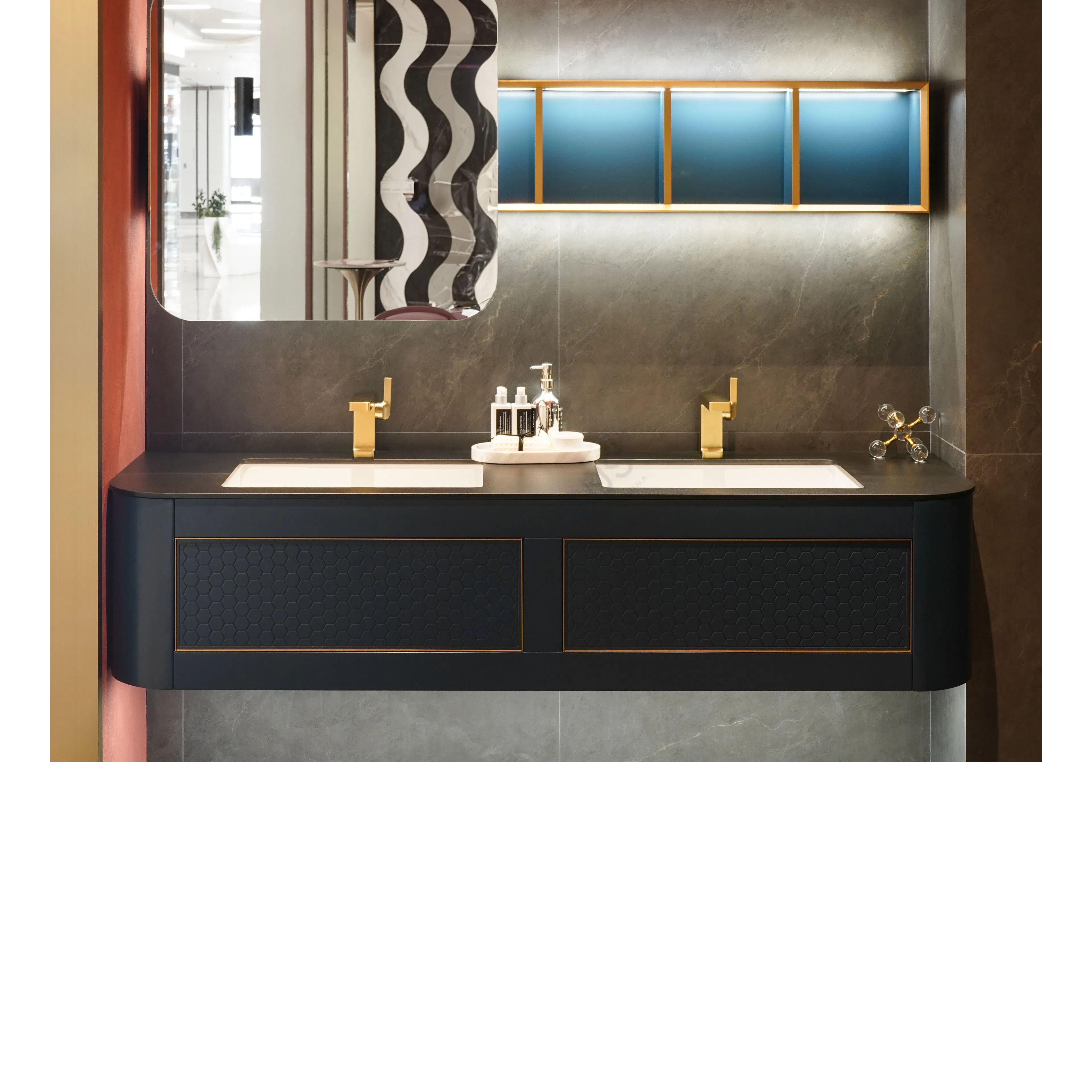 Constructed with durable materials including quality mirror glass, metal, and plywood, this piece is designed to withstand the specific conditions of a bathroom environment, ensuring both beauty and longevity.