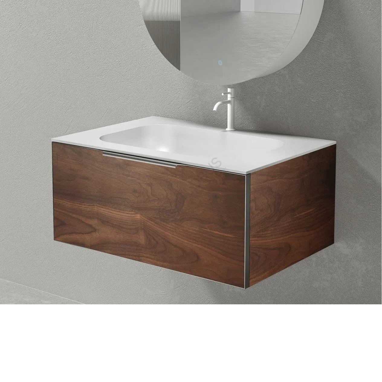 Crafted from quality mirror and solid wood materials, this piece incorporates a practical shelf area within its contemporary design. It offers convenient storage for essentials while maintaining a sleek aesthetic. This versatile addition enhances both the utility and modern appeal of the bathroom space.